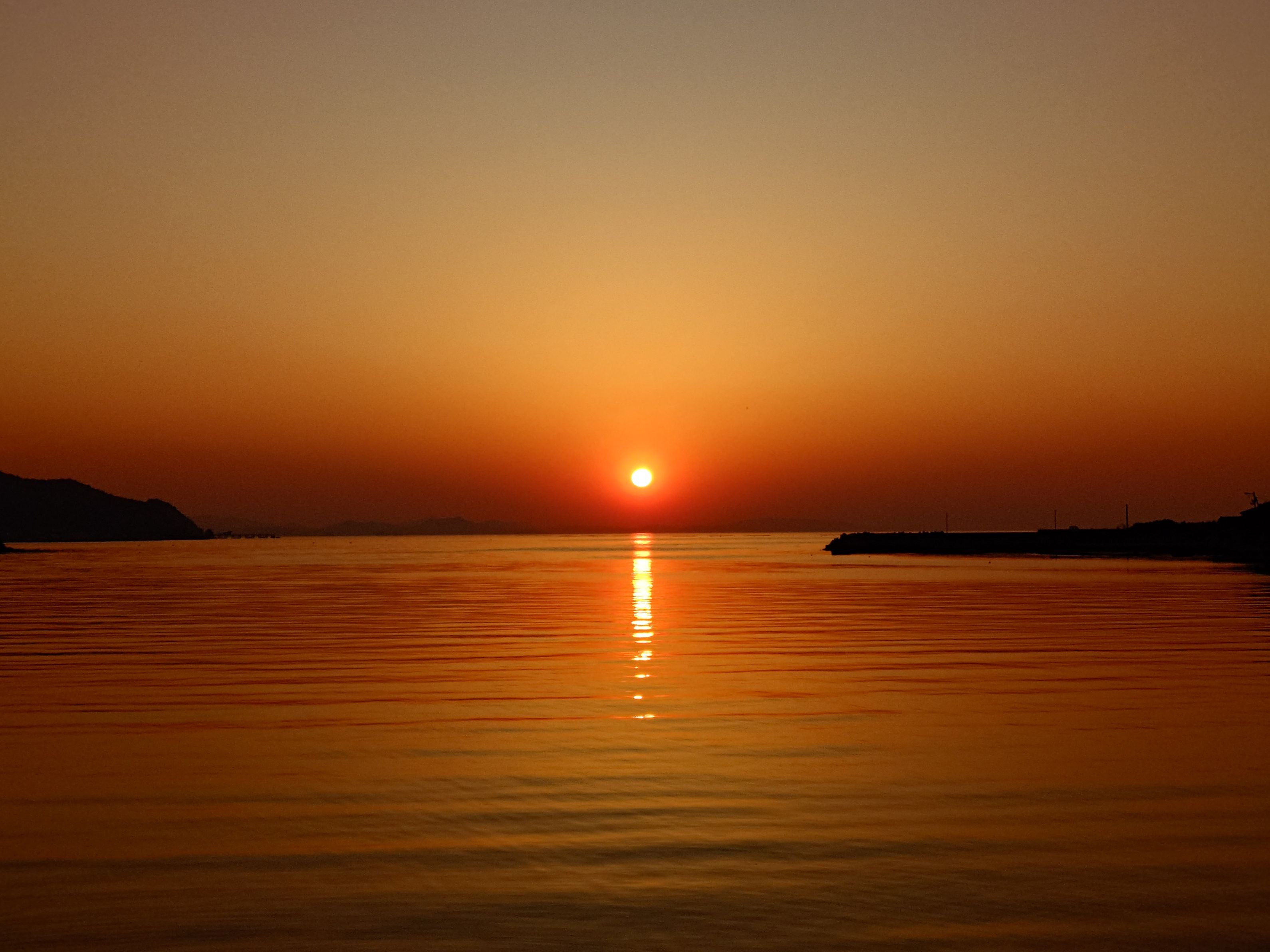 日出湾から見る夕日は美しい