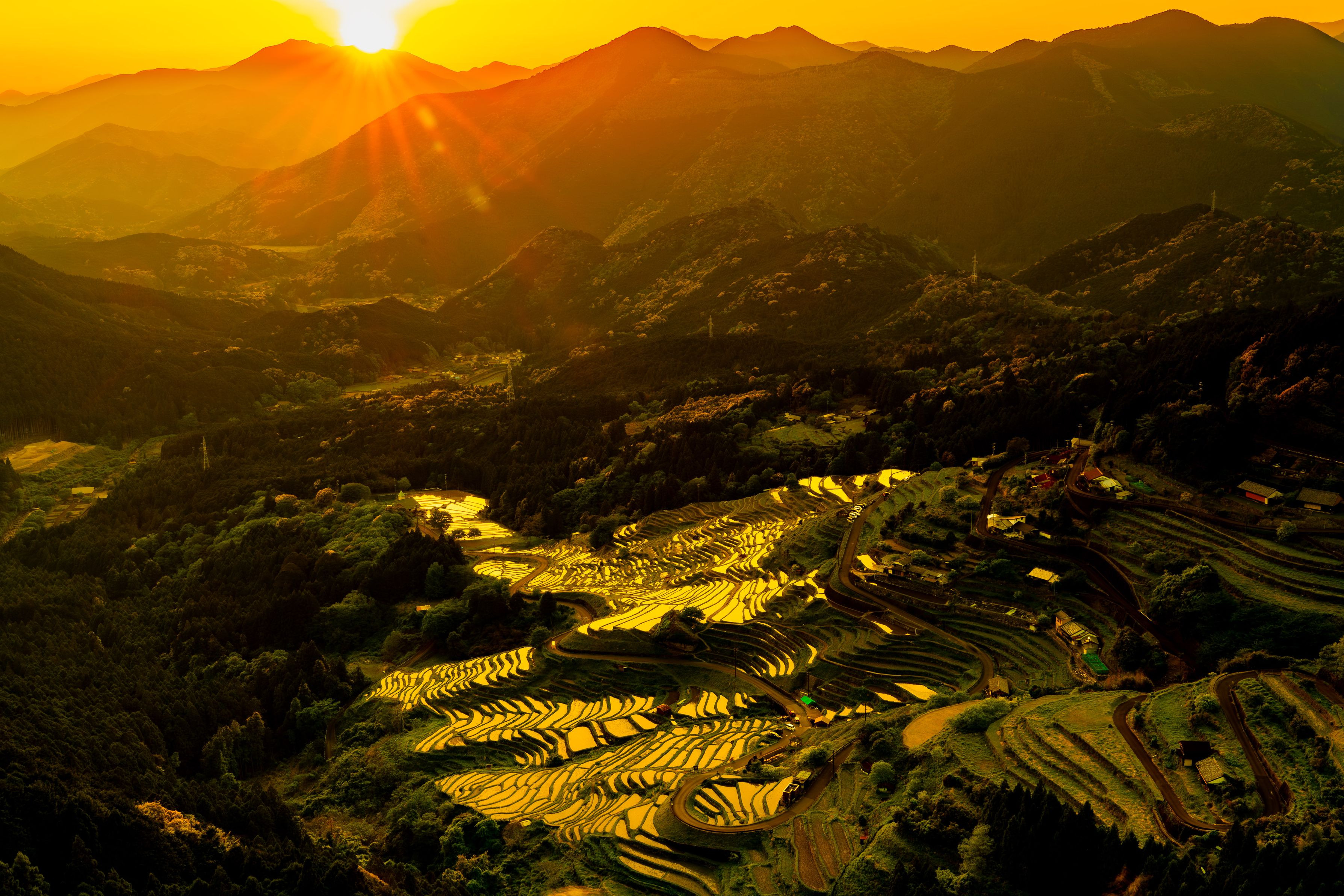 夕日の棚田です。