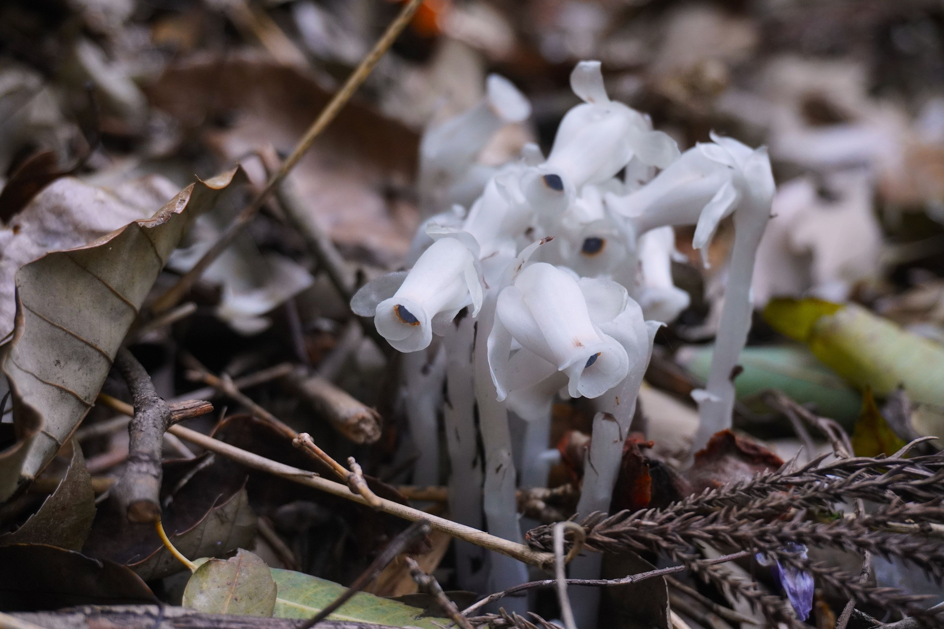ギンリョウソウ(銀竜草 別名:ユウレイタケ) は、緑の葉を持たない腐生植物ですがツツジの仲間に属する多年草。花言葉は「はにかむ」や「そっと見守る」です。以前から見たいと思っていたら、本日出会うことができました。
