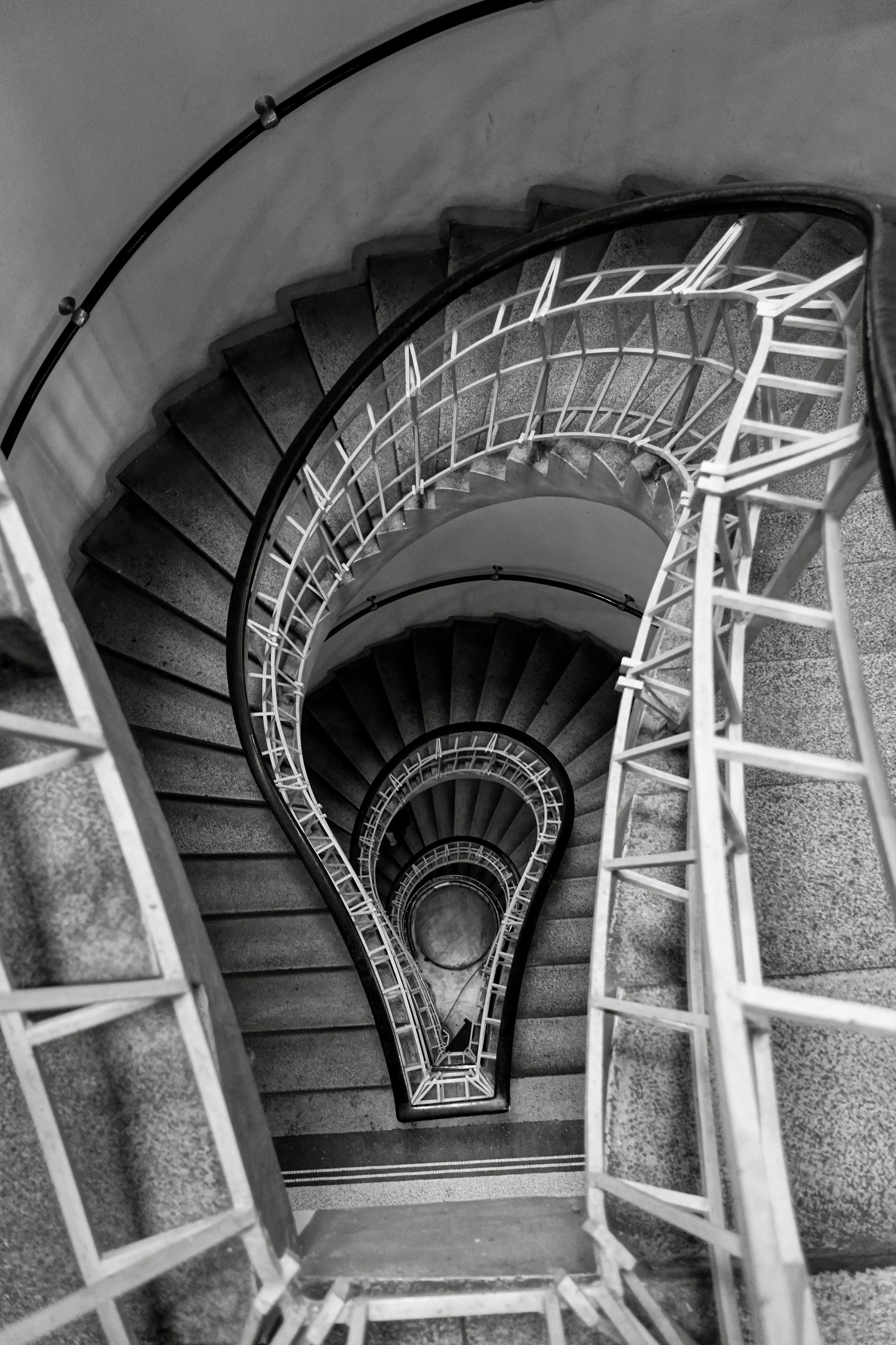 階段の上から下から。