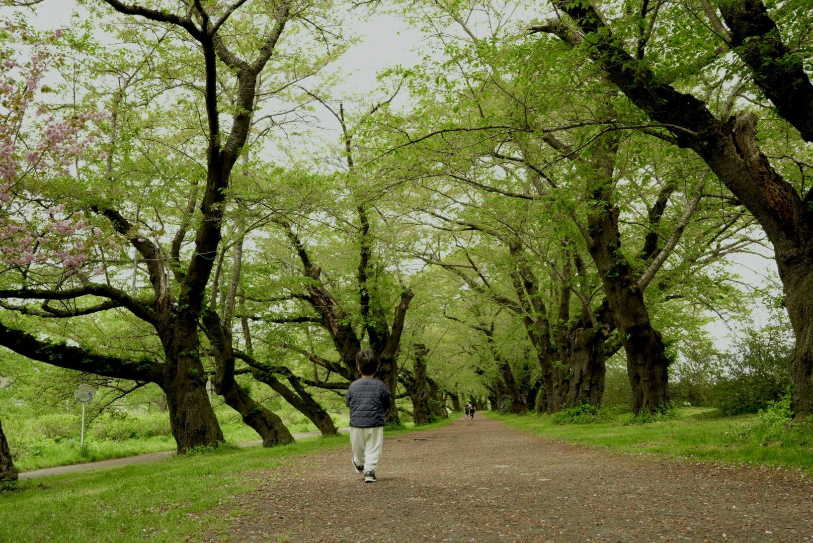 森の中に入ってく息子