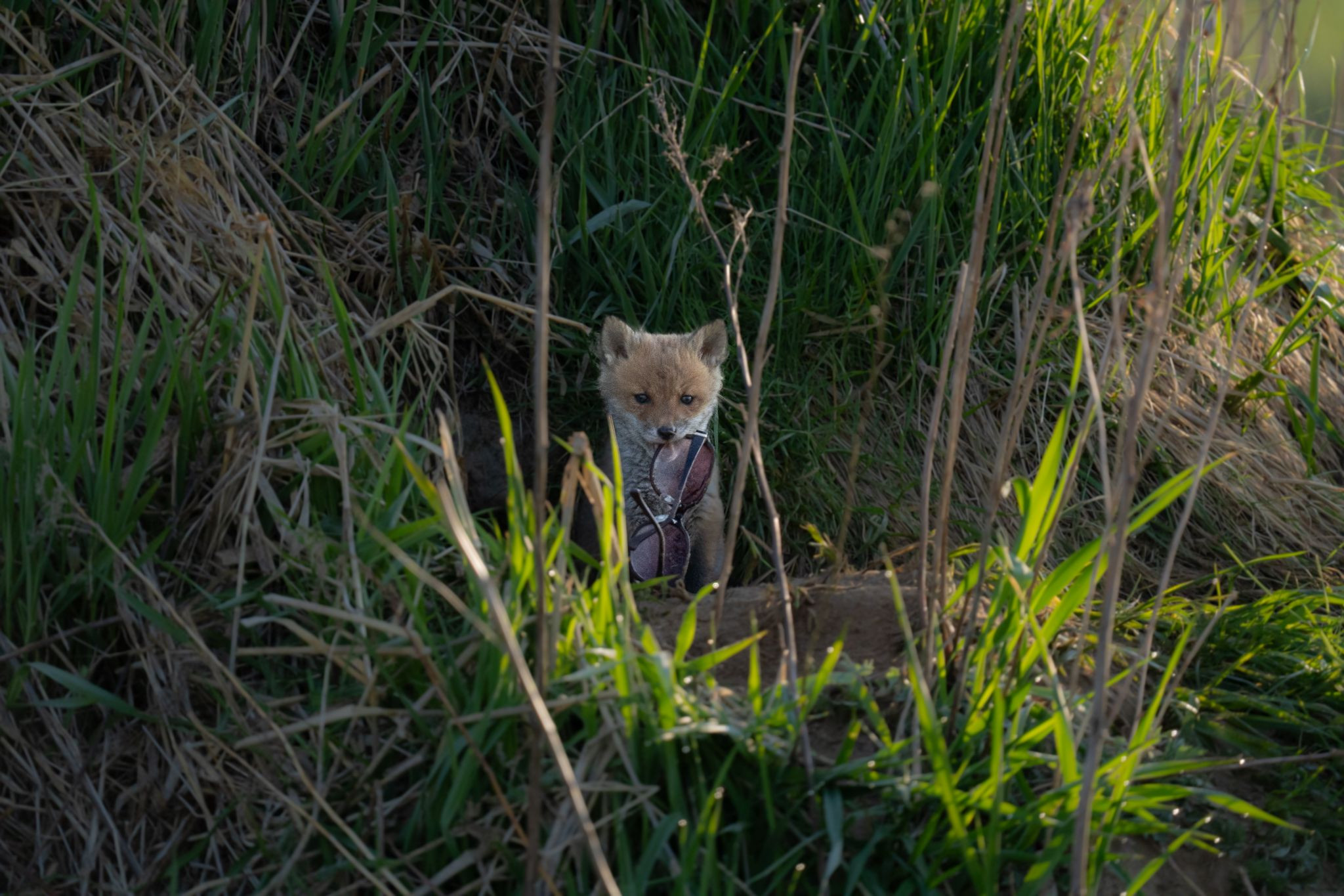 こぎつね界隈でのファッションリーダーを目指す子。 手始めに背丈ほどあるサングラスから試着。