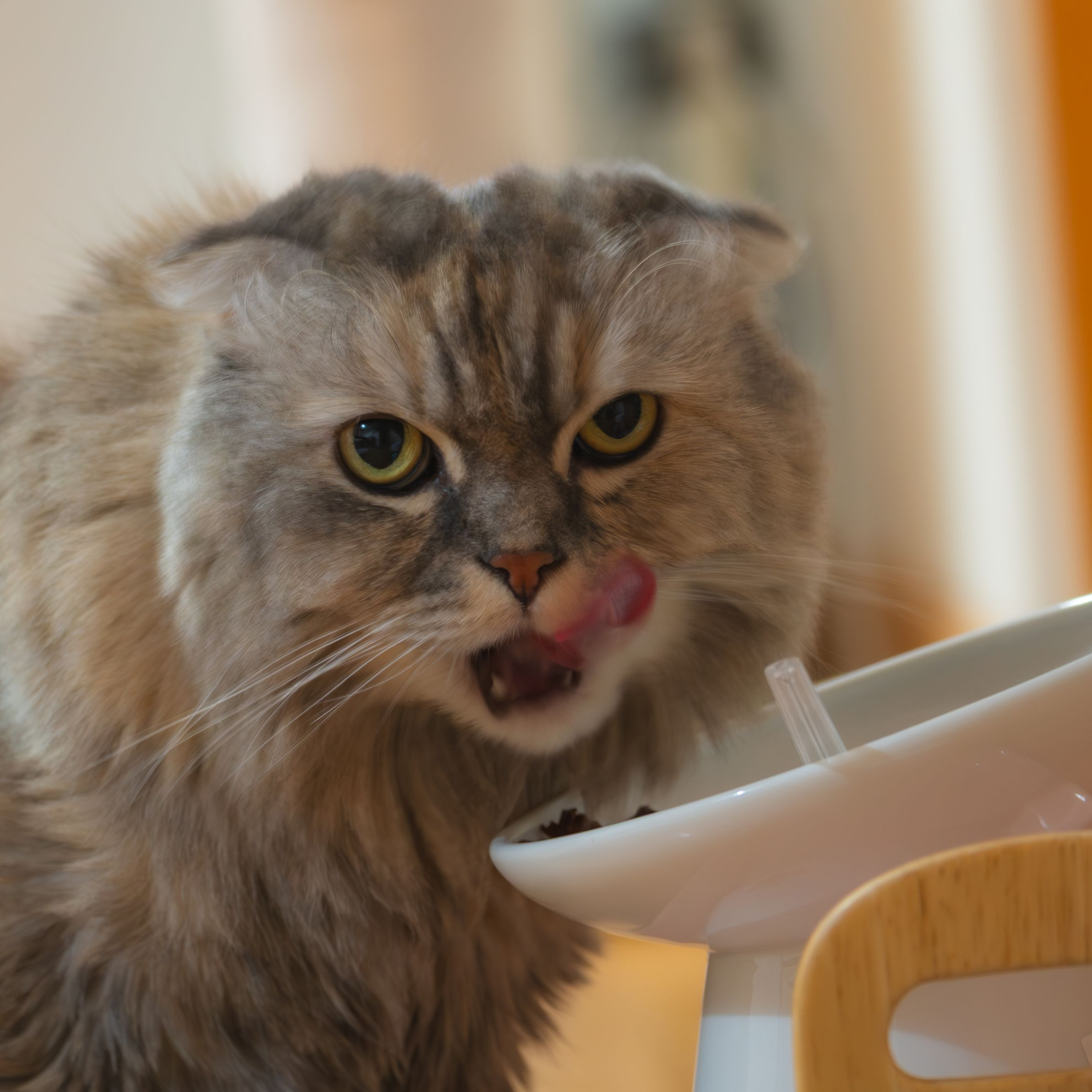 実家の猫ちゃんです🐱 お食事中に目があった瞬間を撮影しました📸