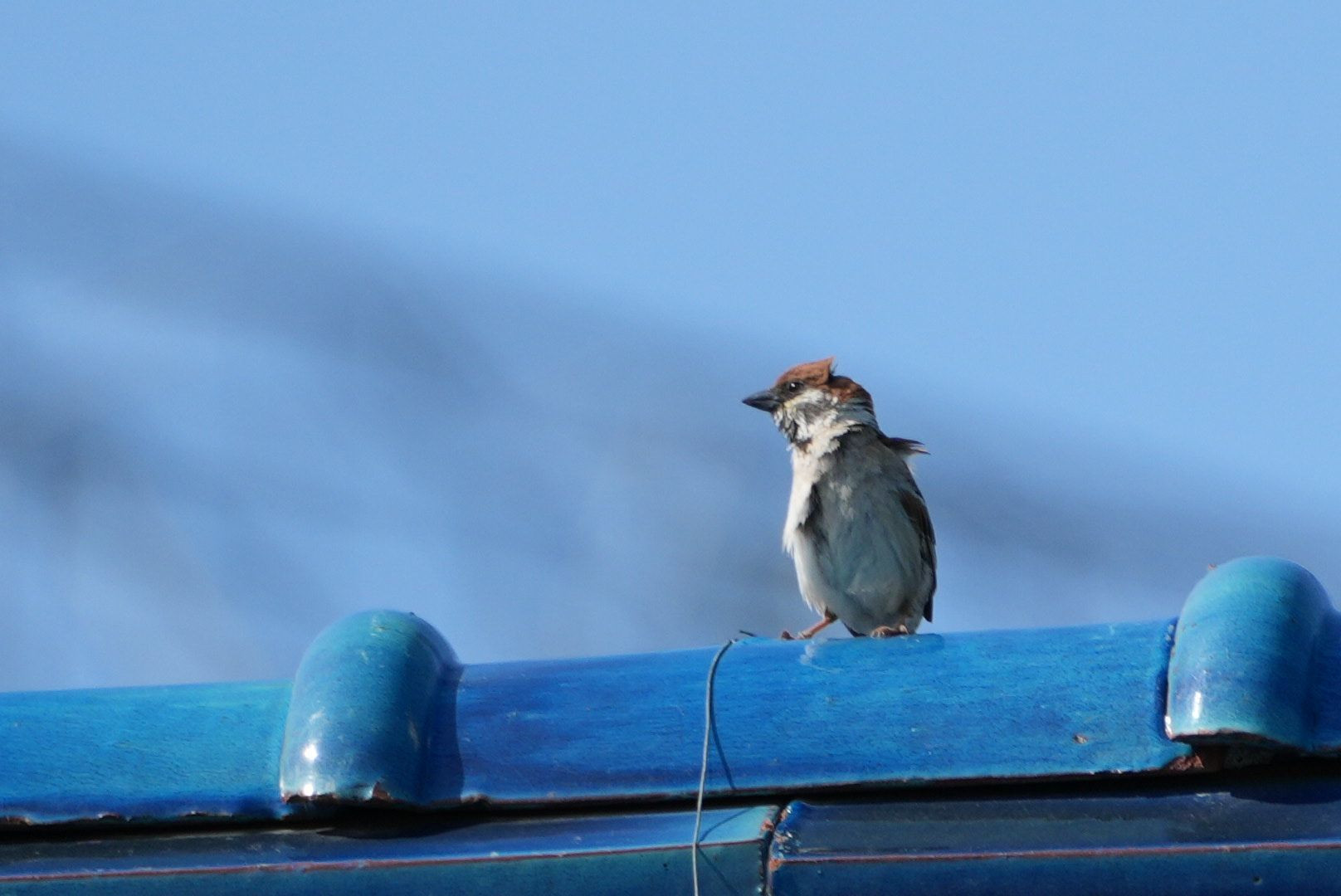 寝癖みたいな可愛い頭のスズメです…