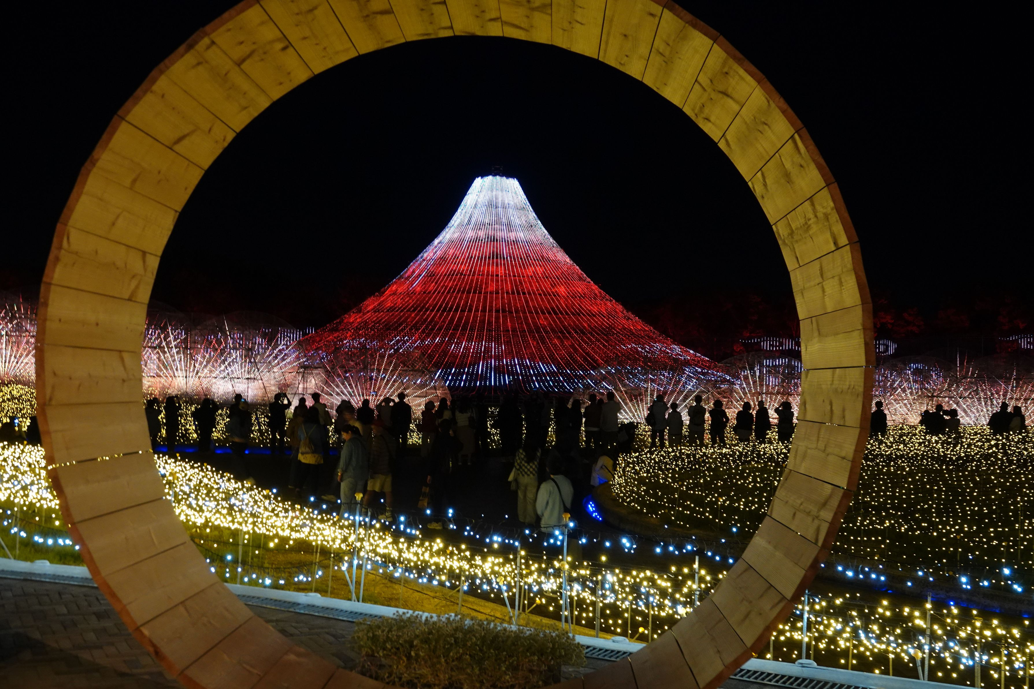今回は前回見逃した桶や巨大フレームから富士のイルミネーションを撮ってみました