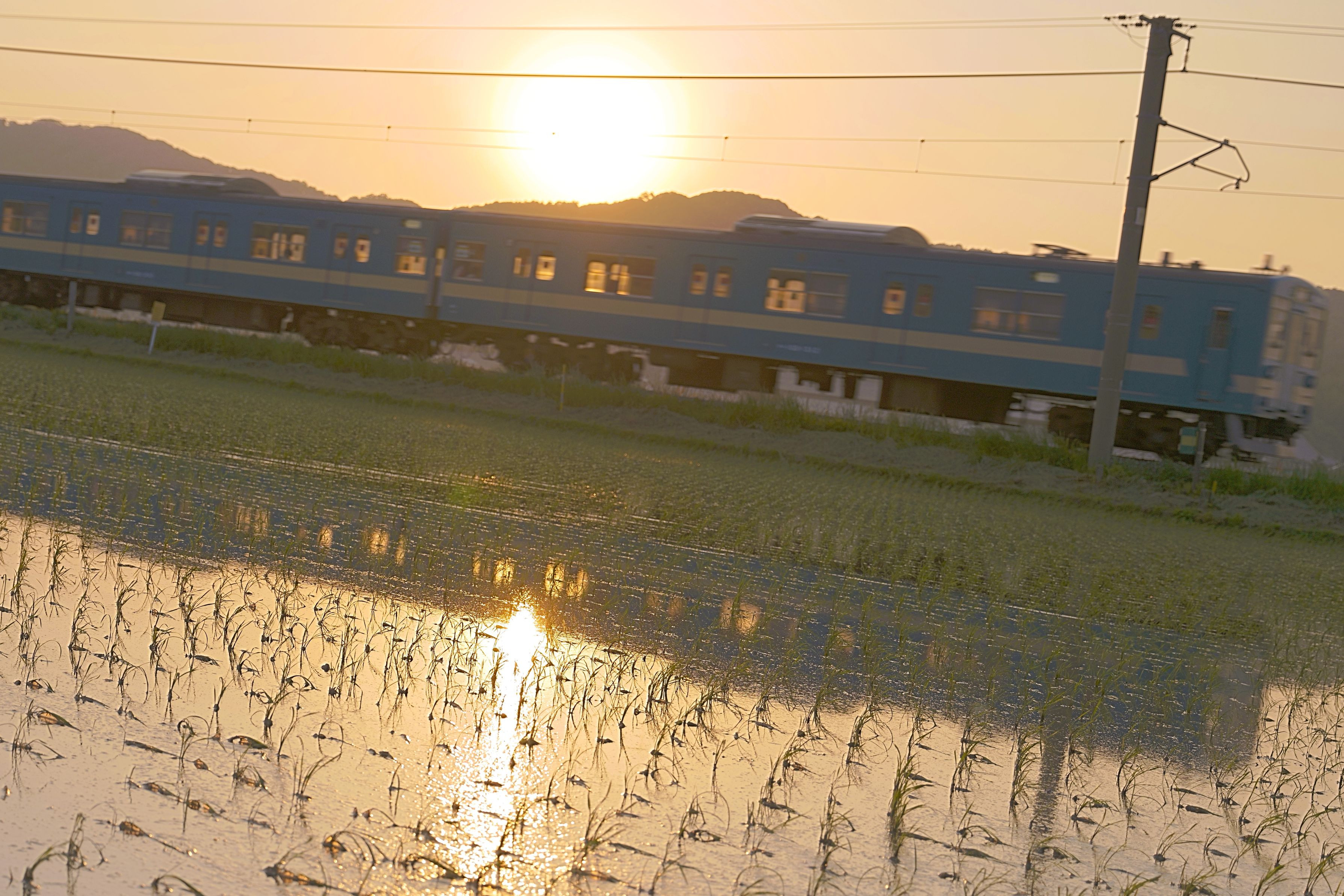 製品情報>My Sony>αcafe>水田に映る電車と夕陽(Toys307 さん)