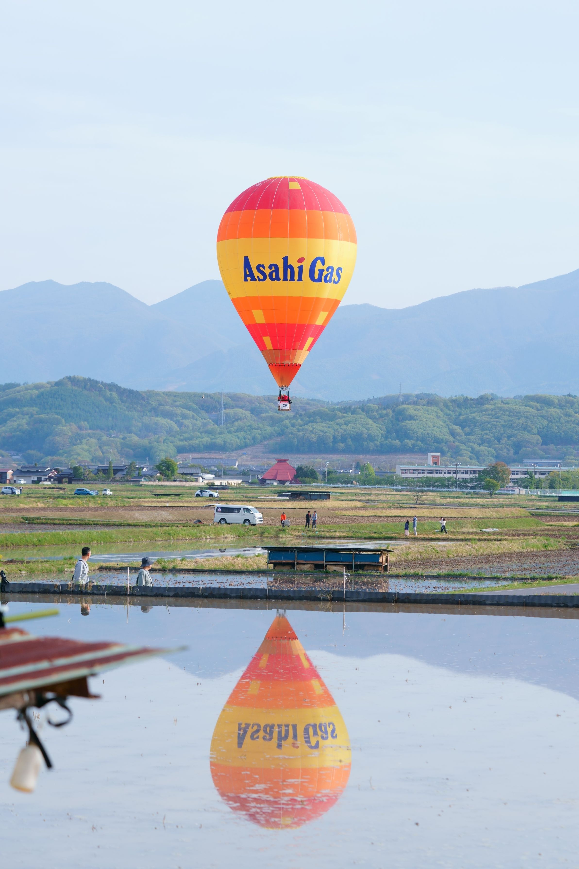 佐久バルーンフェスティバル2025行ってきました。 田植え前の田んぼに映るバルーン良いですね!