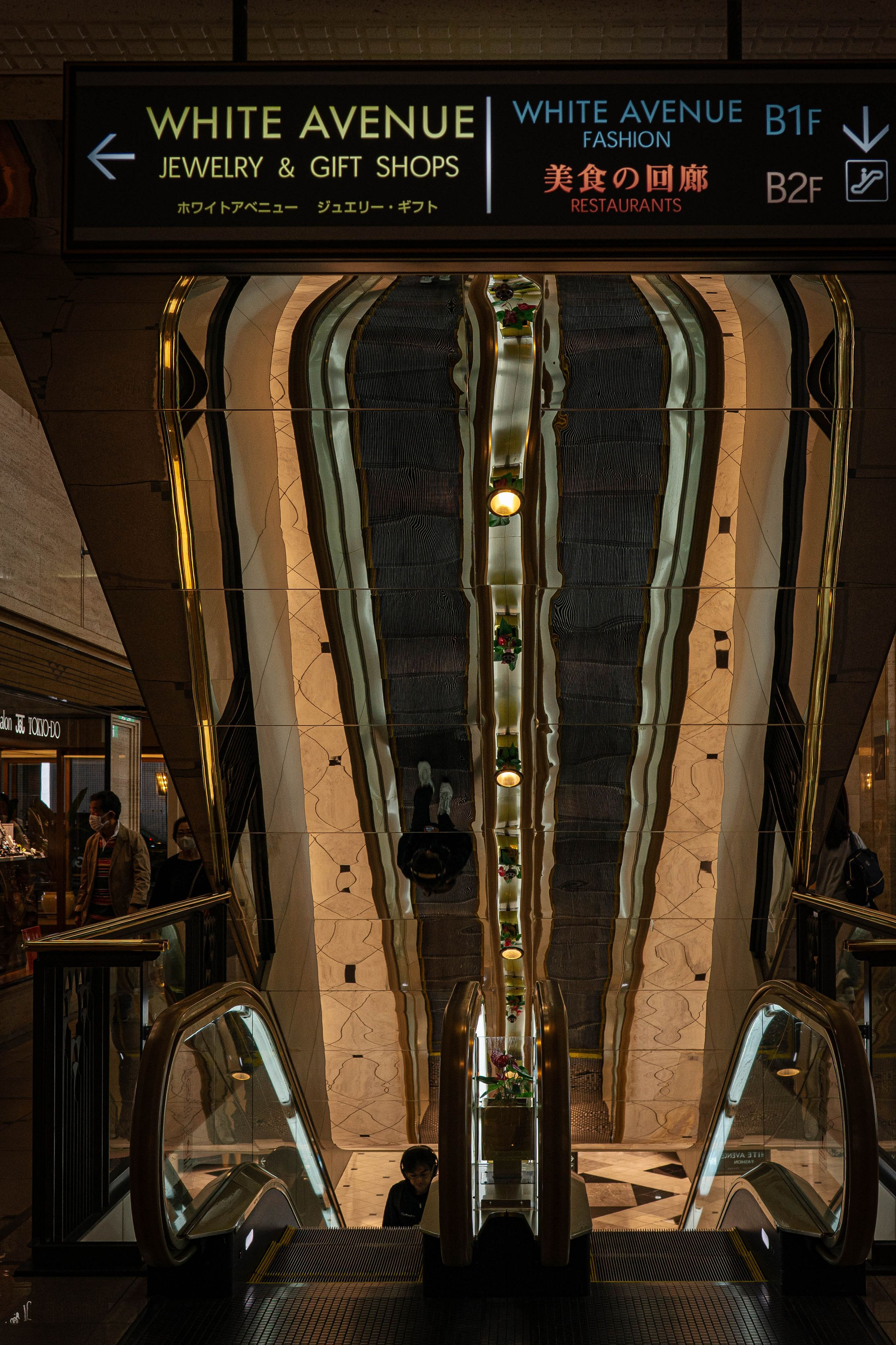 天井に写ったエスカレーター
