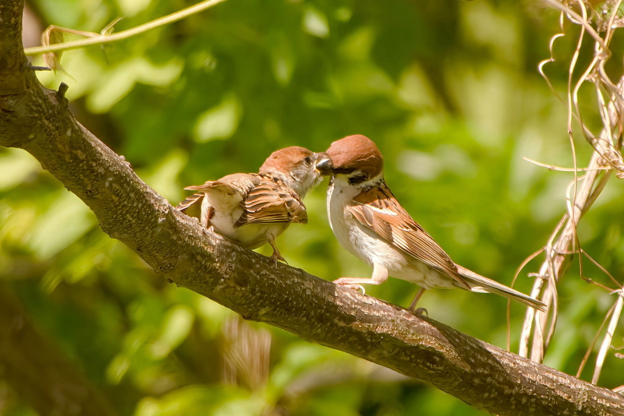 かわいい親子チュンに出会いました。チビチュンがあちこちデビューしてるのでにぎやかですね。可愛いけど頂戴攻撃に親鳥も大変ですね(^^)