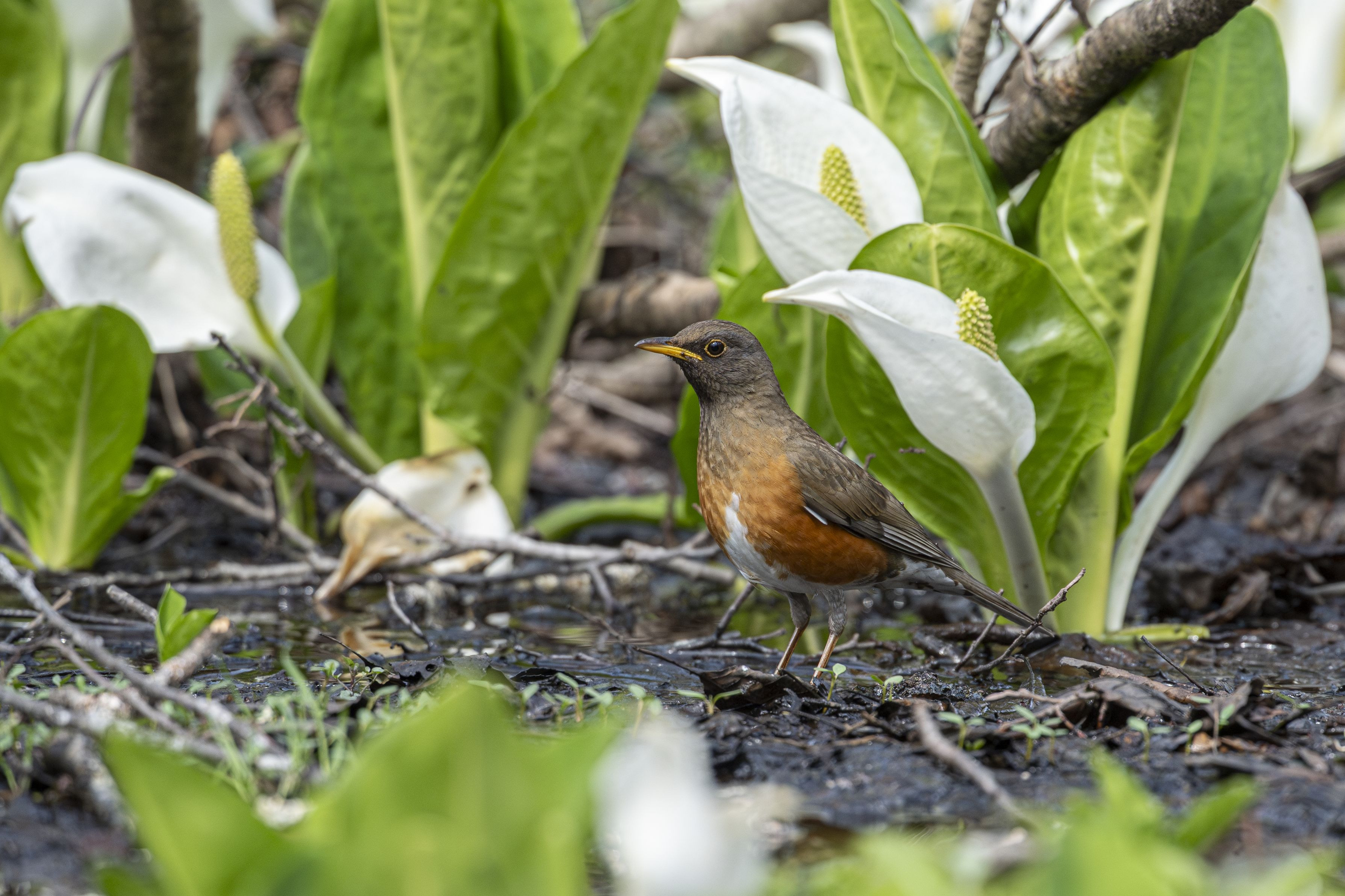 まだ、戸隠森林公園は初夏を迎える準備中。 水芭蕉とアカハラのコラボを撮ることができました。 #アカハラ#