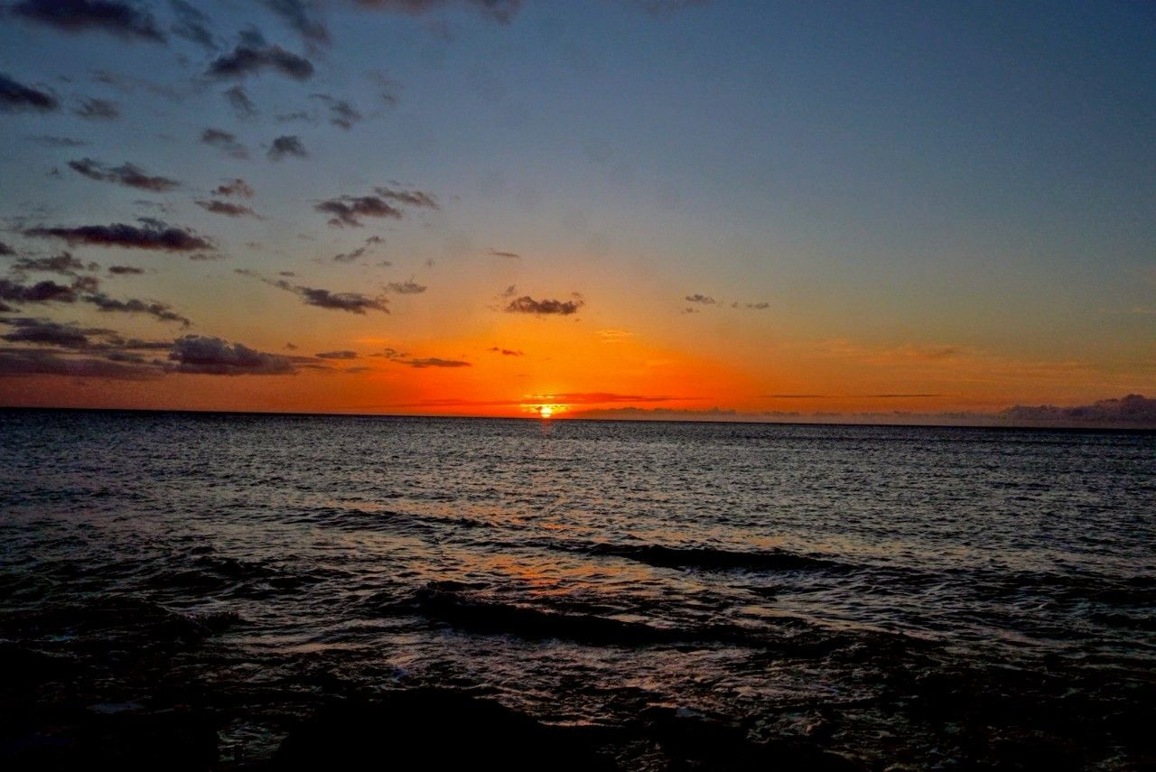 ハワイ島アナエホオマル・ベイ からの夕日