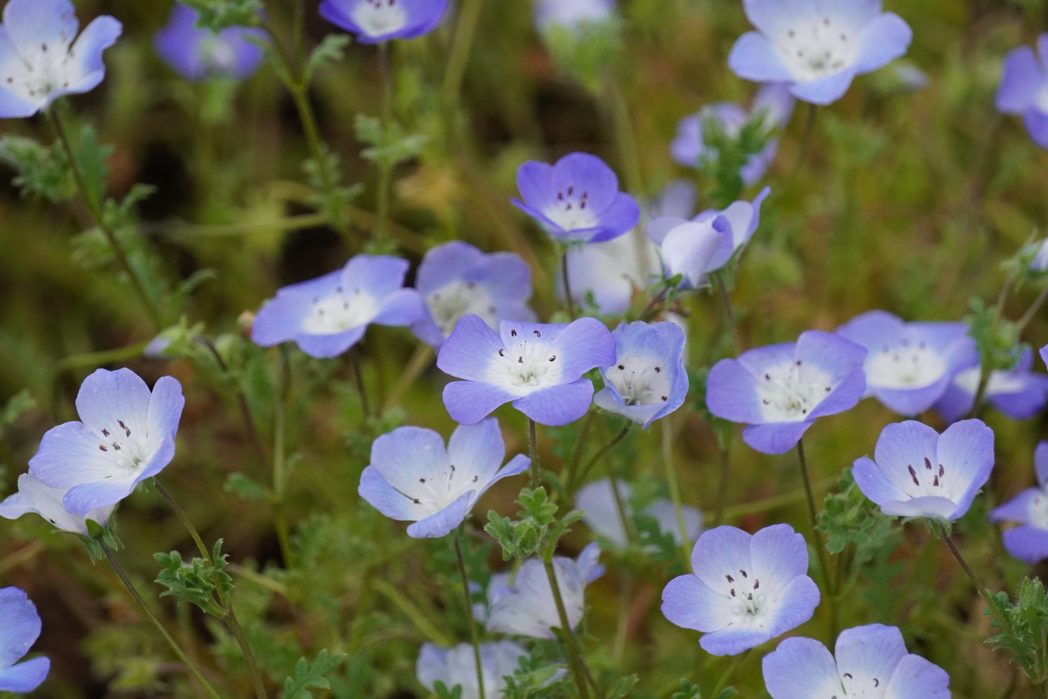 最近、ネモフィラを植えているところが多くなりましたね。そろそろ花は終わりですが、きれいに咲いているところが見れてラッキーでした。