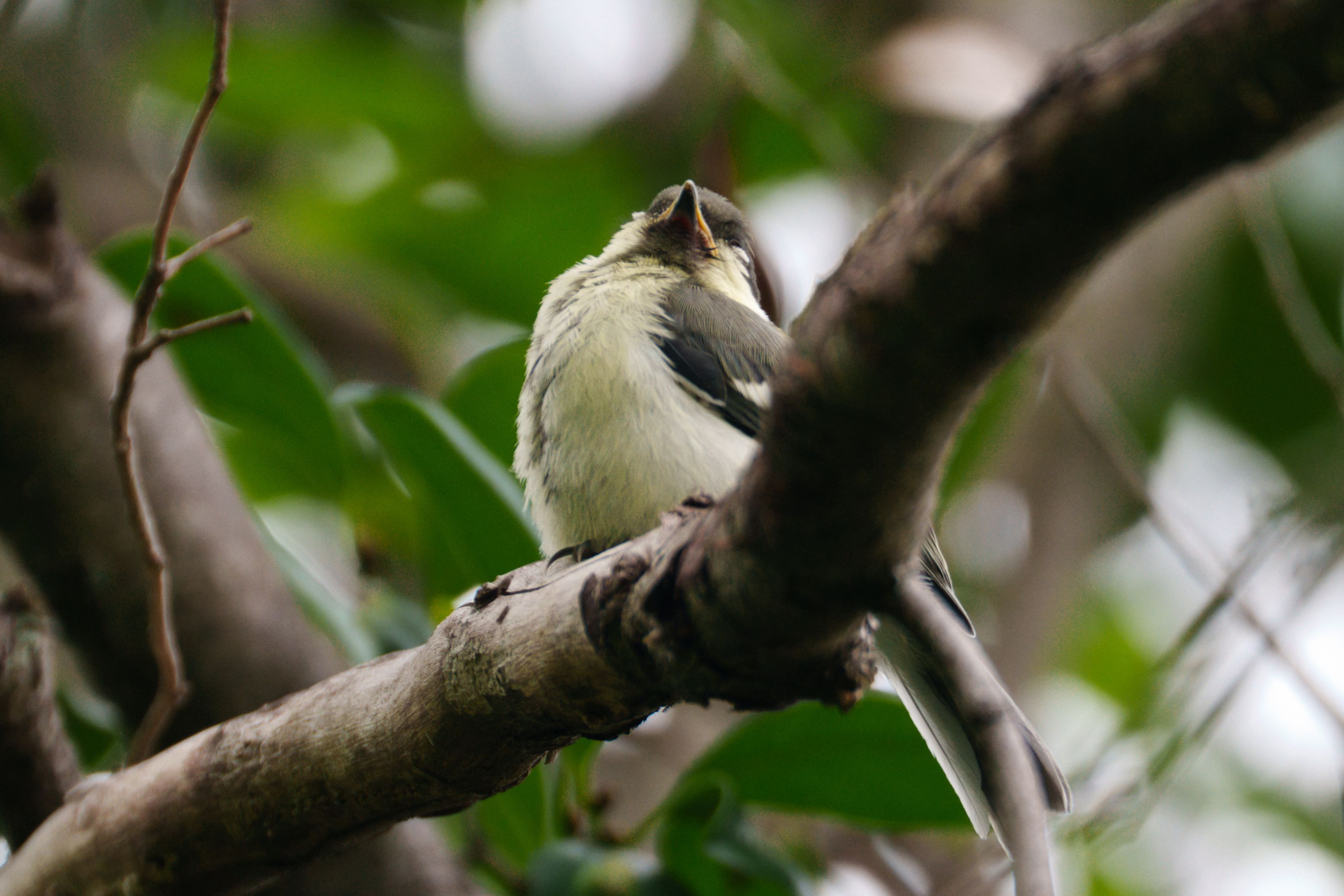 木の上で眠る幼鳥この後親鳥から餌を貰っていました