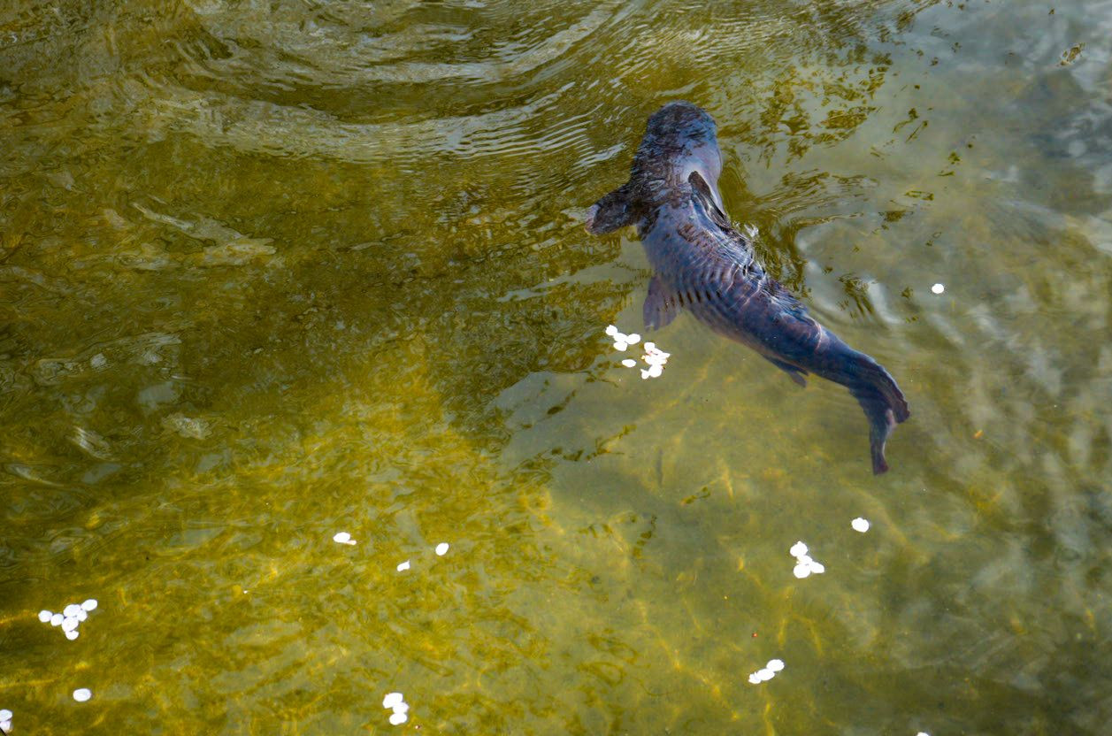 地元で有名な公園。 春の桜が落ちた池は楽しい。鯉が水面を揺らし遊んでいるよう。