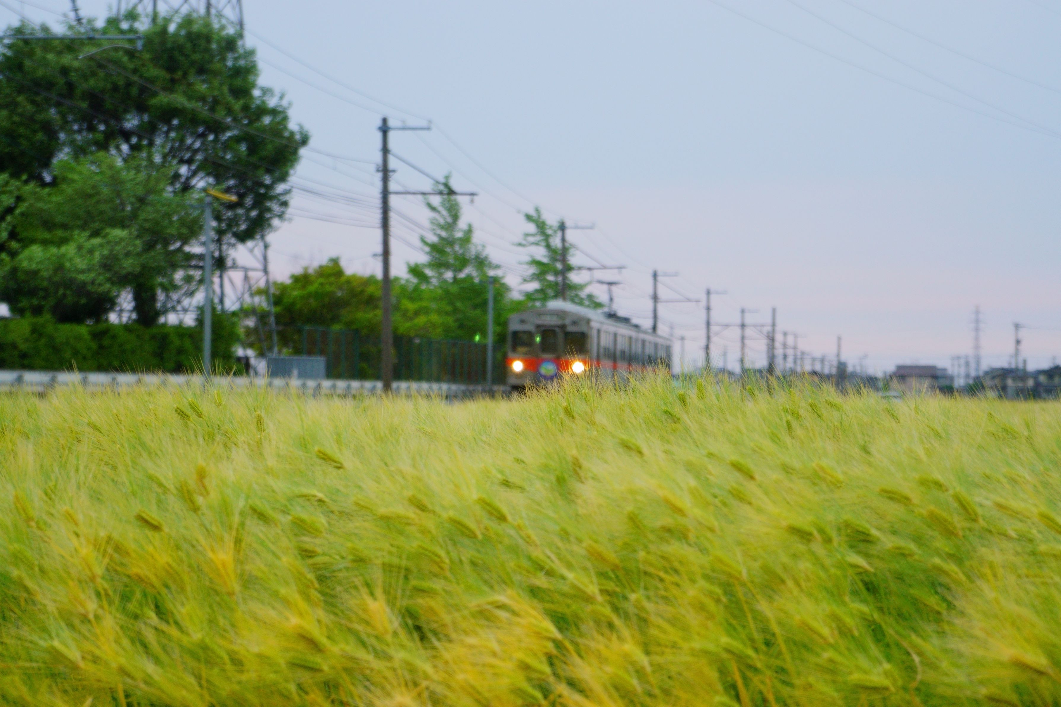 終点へ向かって麦秋の麦畑を走るローカル線 北陸鉄道石川線