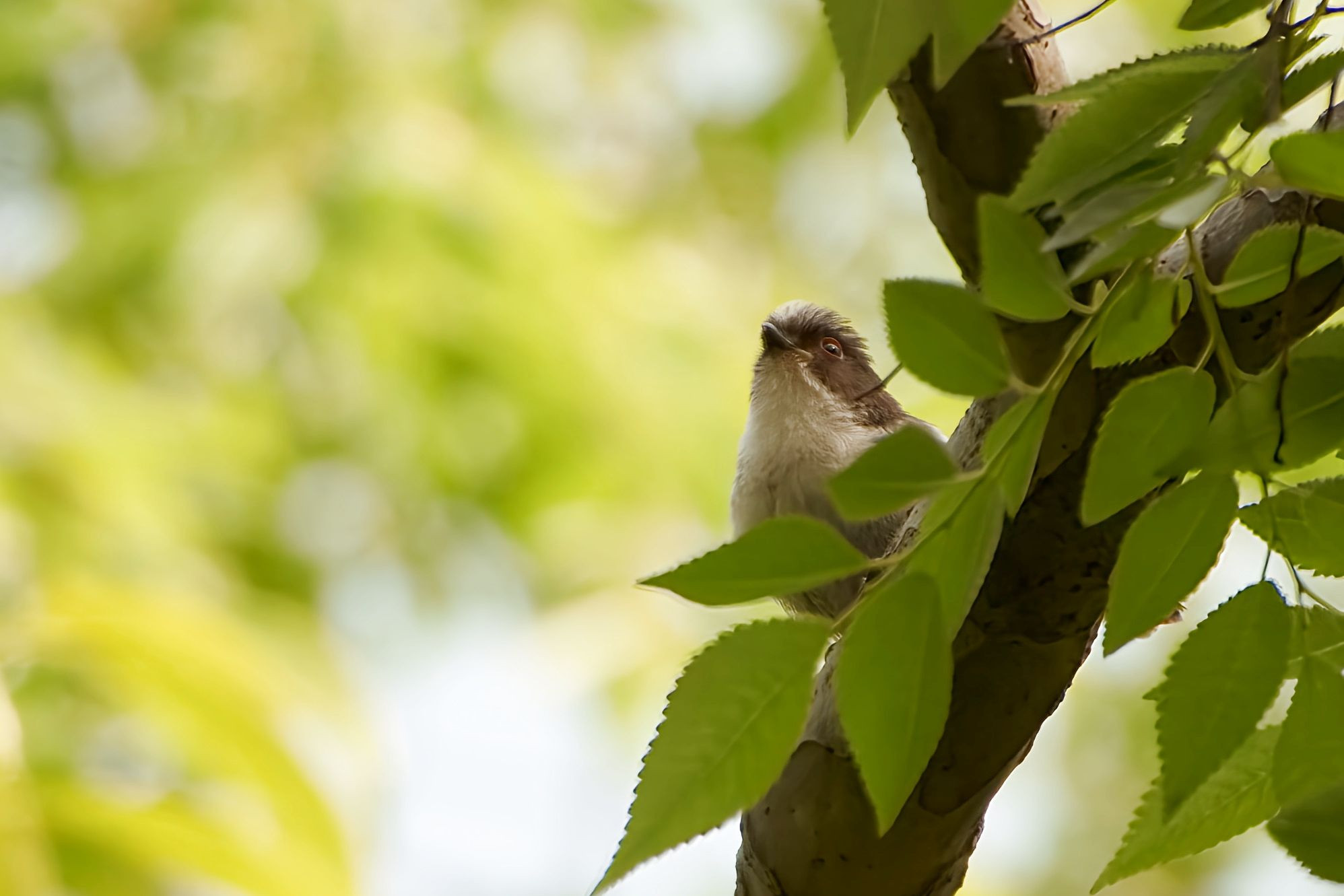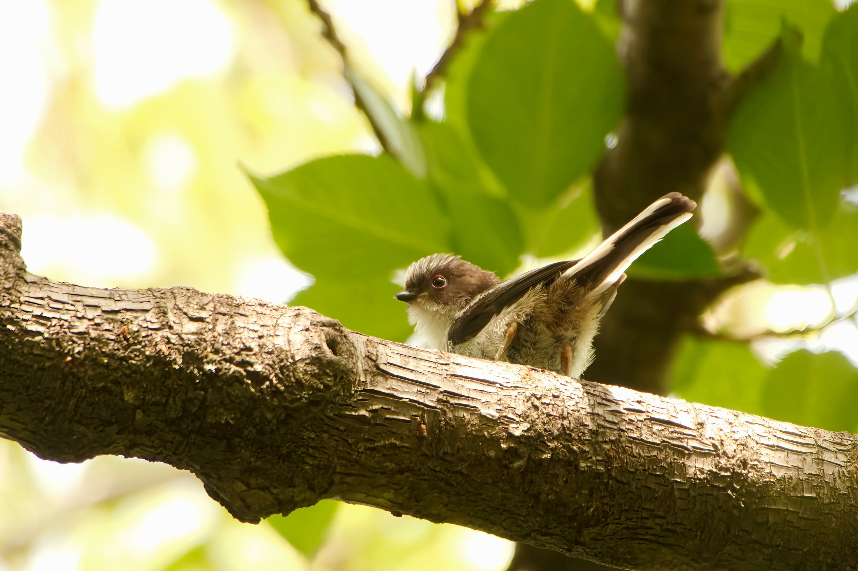 赤い縁取りの瞳が可愛いちびエナガ達です。空を見上げる姿が探求心と希望に満ちています、頑張れみんな!(^^)!