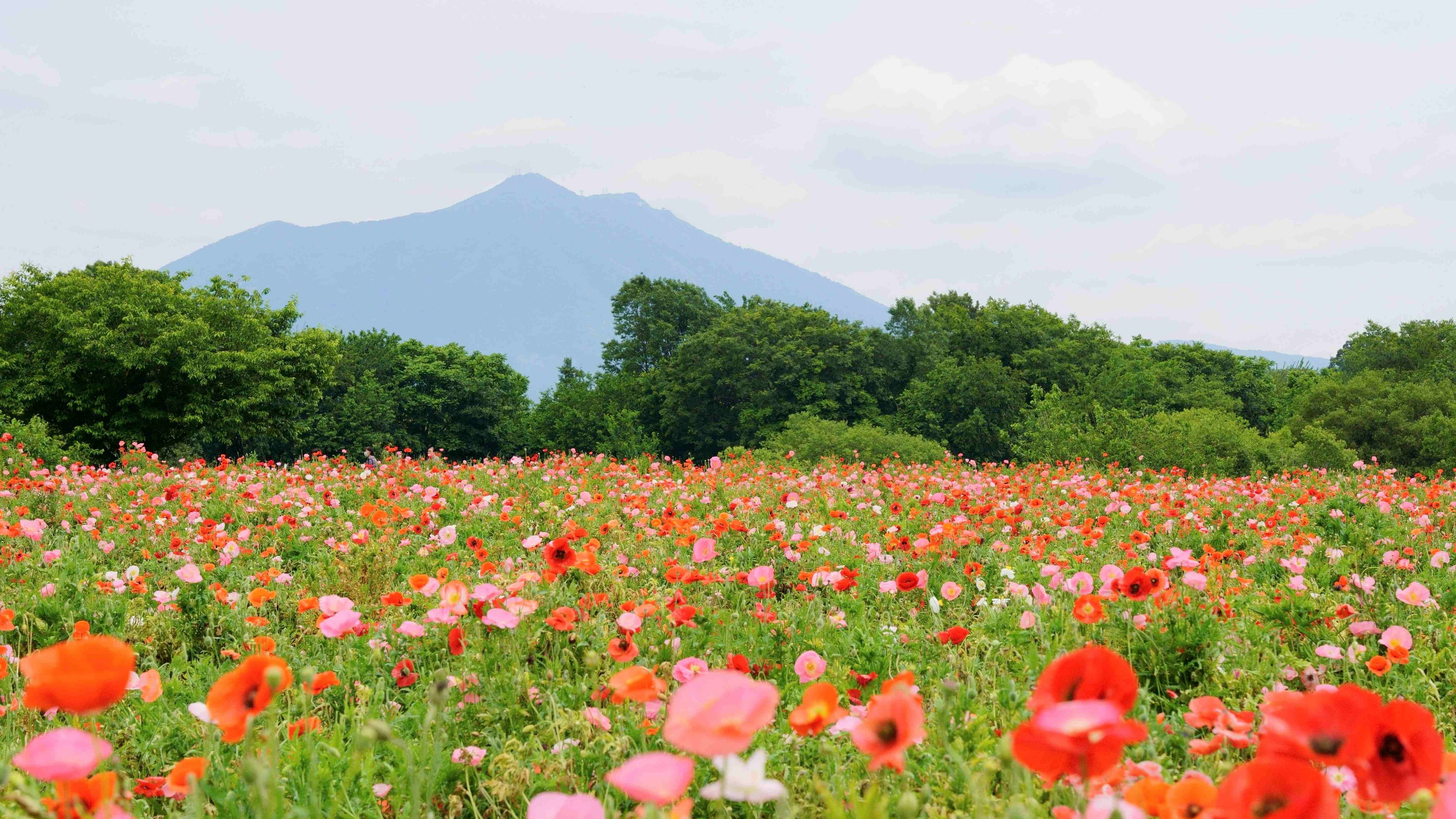 筑波山の麓の町に咲くシャーリーポピーをみました。