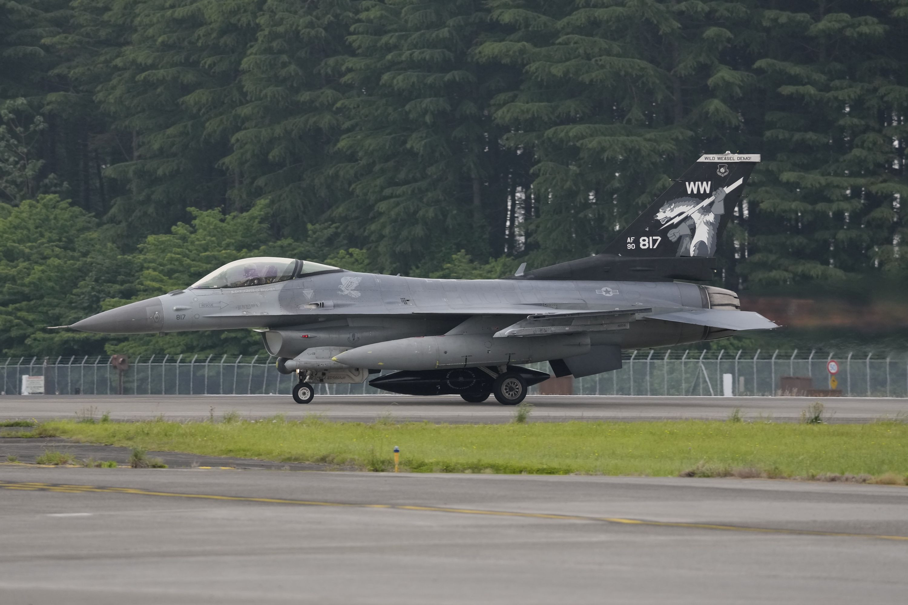 横田基地友好祭2025 PACAF F-16 Demonstration Team 黒イタチの離陸。