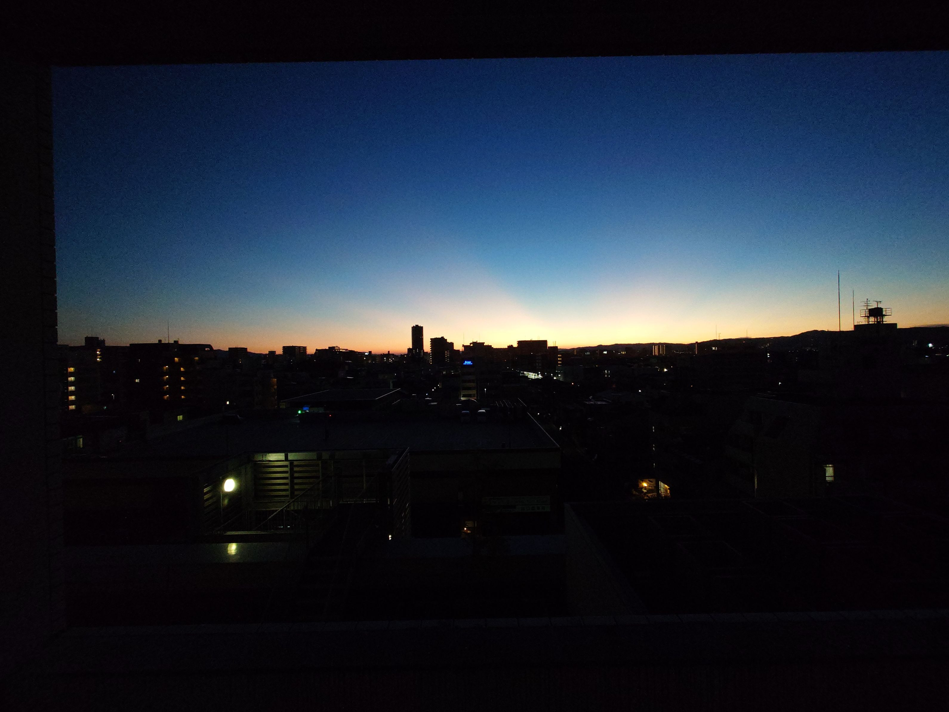 手術後に撮影した明け方の写真。 実は右側に始業前の駅が写っています。 京阪電鉄の土居駅です。