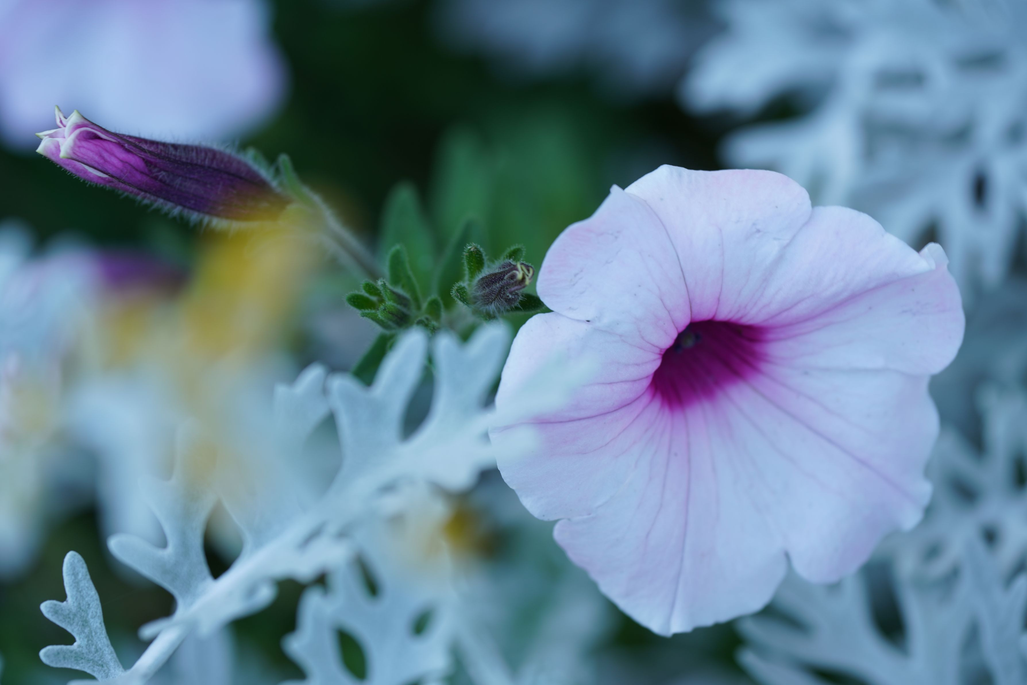 花壇の気品高い紫に魅了されました。隣のシルバーリーフがクールな感じを演出してくれています。