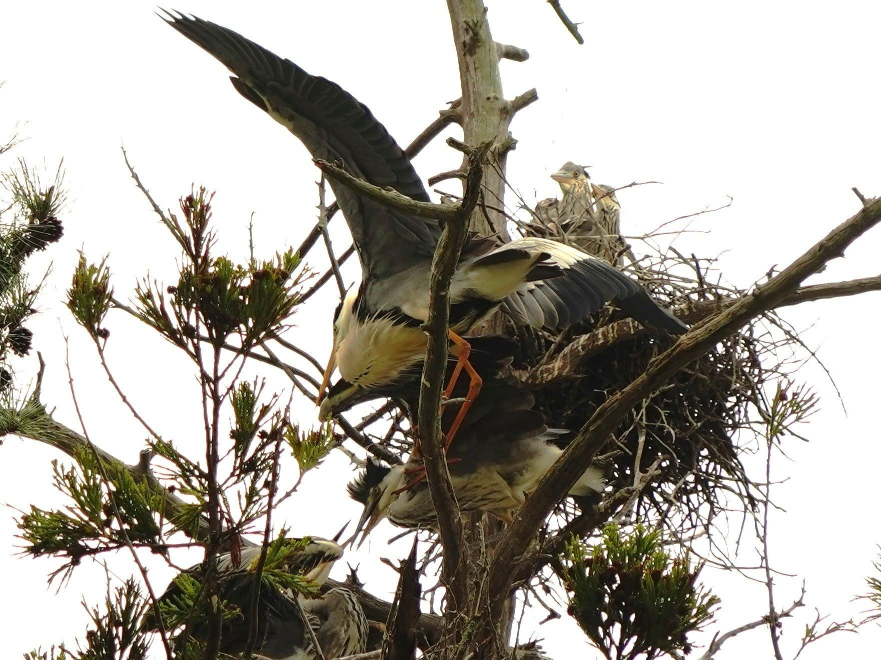 この写真は松江城庭園にある大木の中にサギの子供・親が6羽位、居ますので、題名をサギの家族にしました。