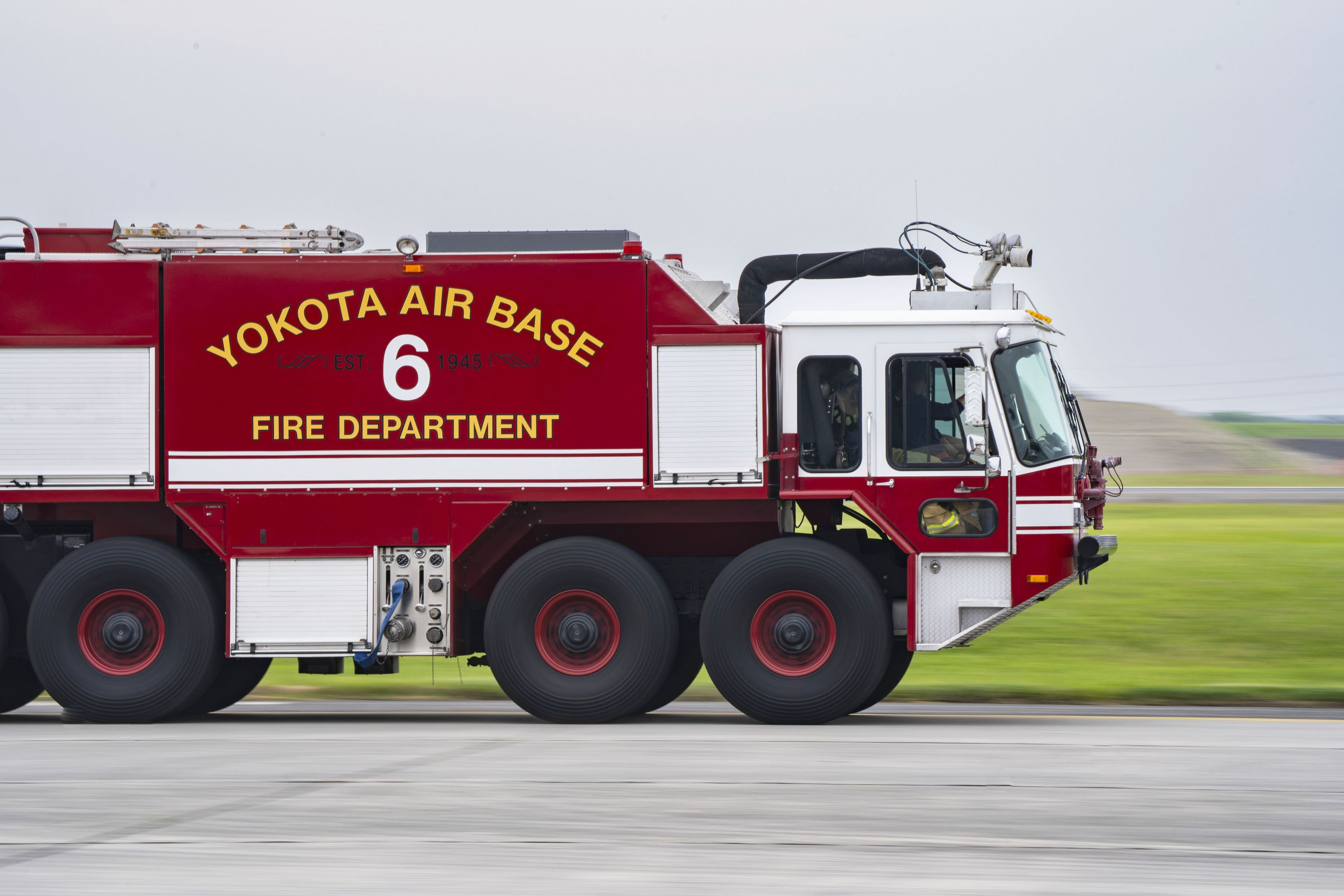 横田基地 日米友好祭2025での消防車と輸送機です。