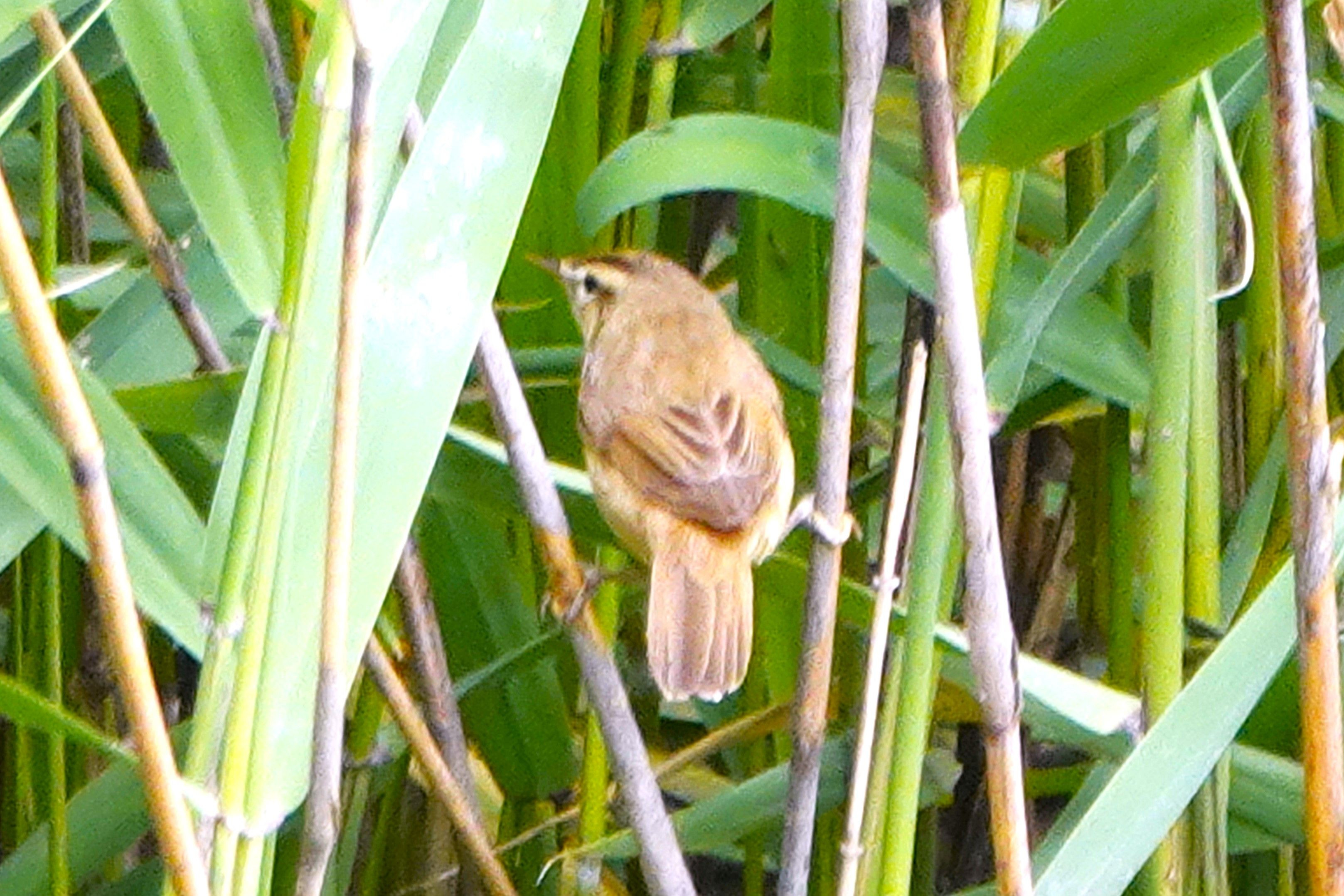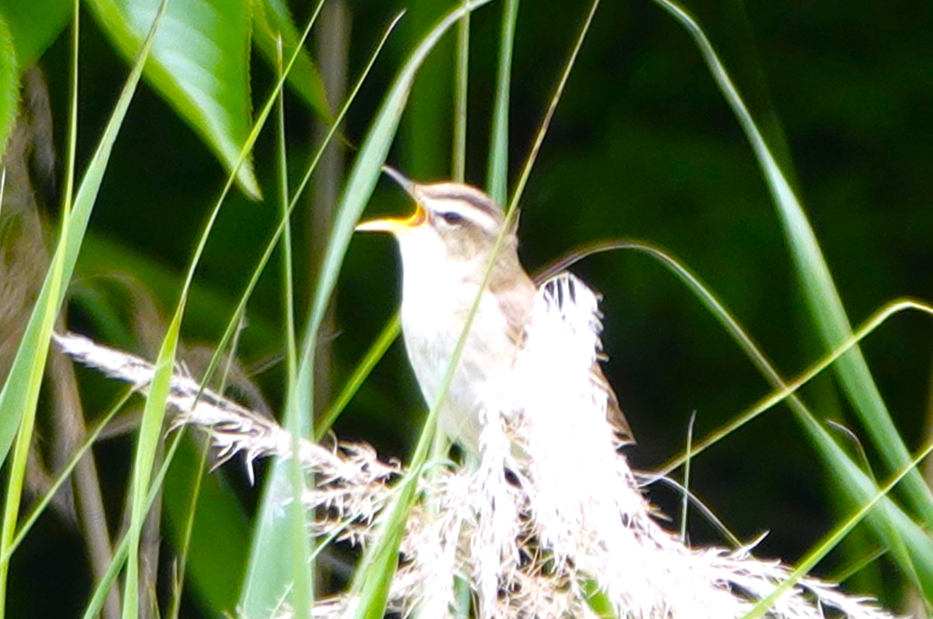 葦原の中で鳴き声がオオヨシキリと似ている様なリズムで鳴いていましたが中から姿を見せてやっと撮ることが出来調べてみるとコヨシキリと分かり初撮りでした。