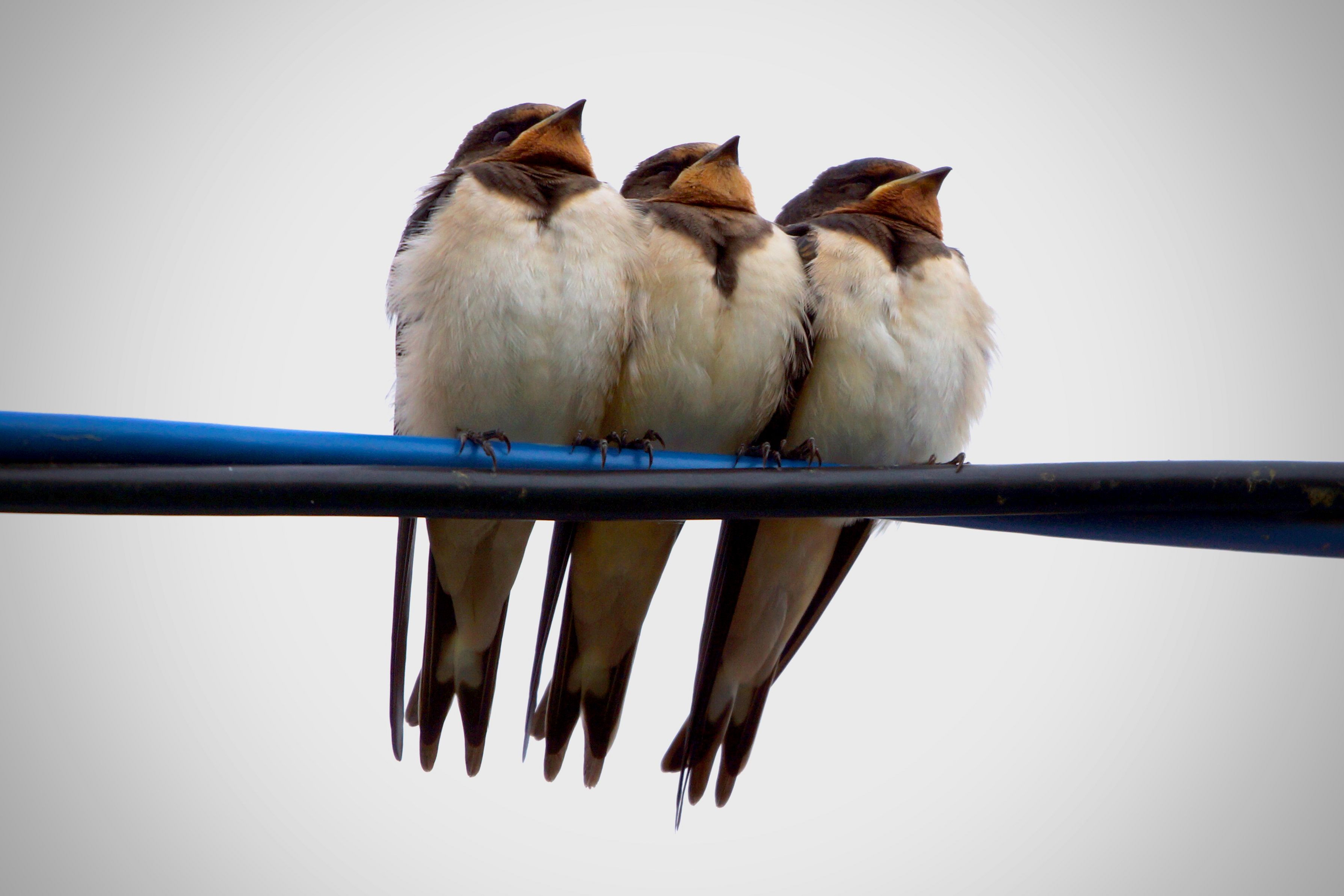 曇天で肌寒い日 3兄弟が身を寄せ合って電線に もう少し一緒にいようって思ってるのかな