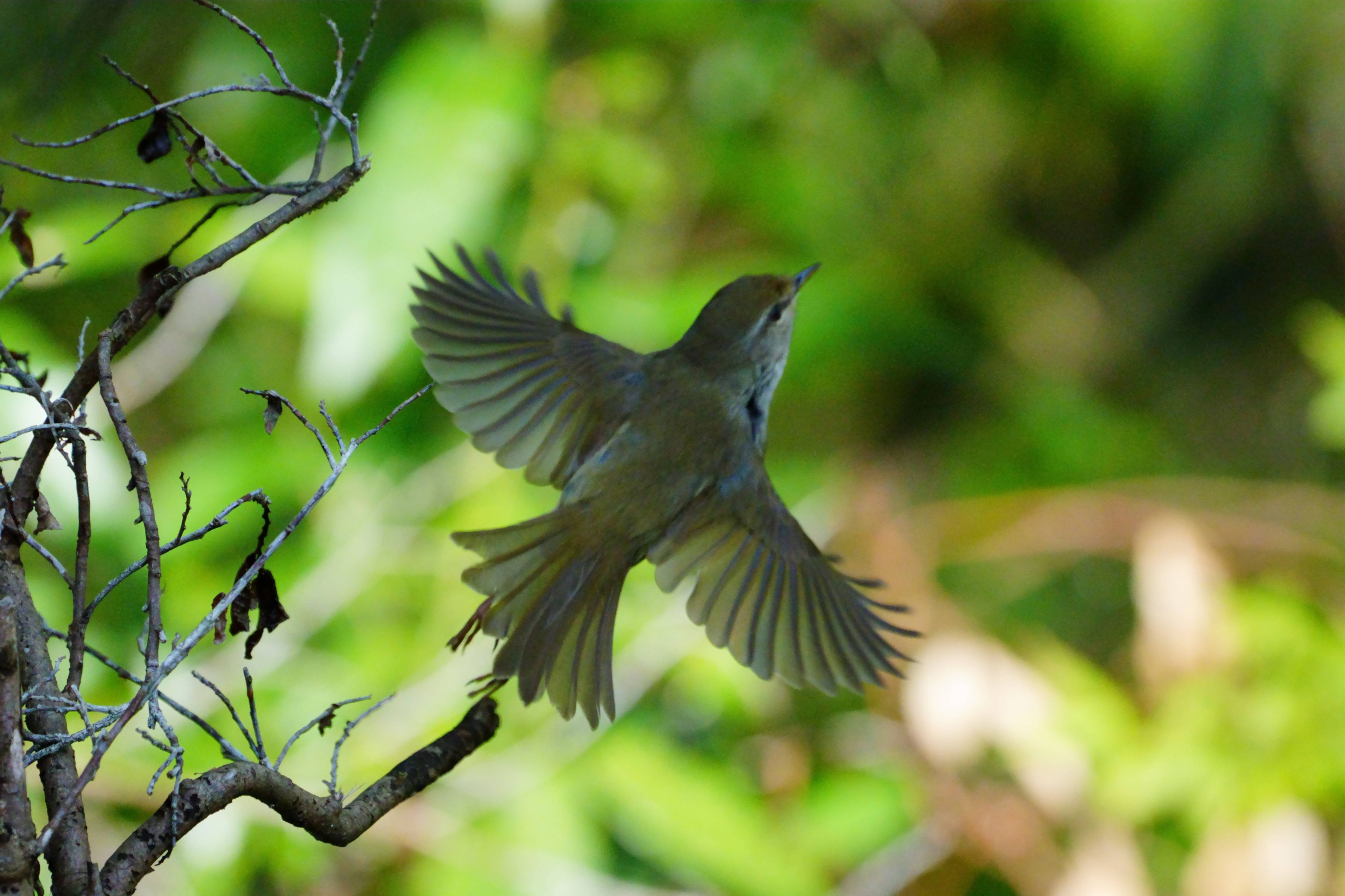新緑の公園、ウグイスの囀りが響き渡っています♪ しかし新緑が生い茂り「声はすれども姿は。。。」になってしまいました。 現像済みの作品から貴重な飛び出しの姿を投稿させて頂きます (^^)