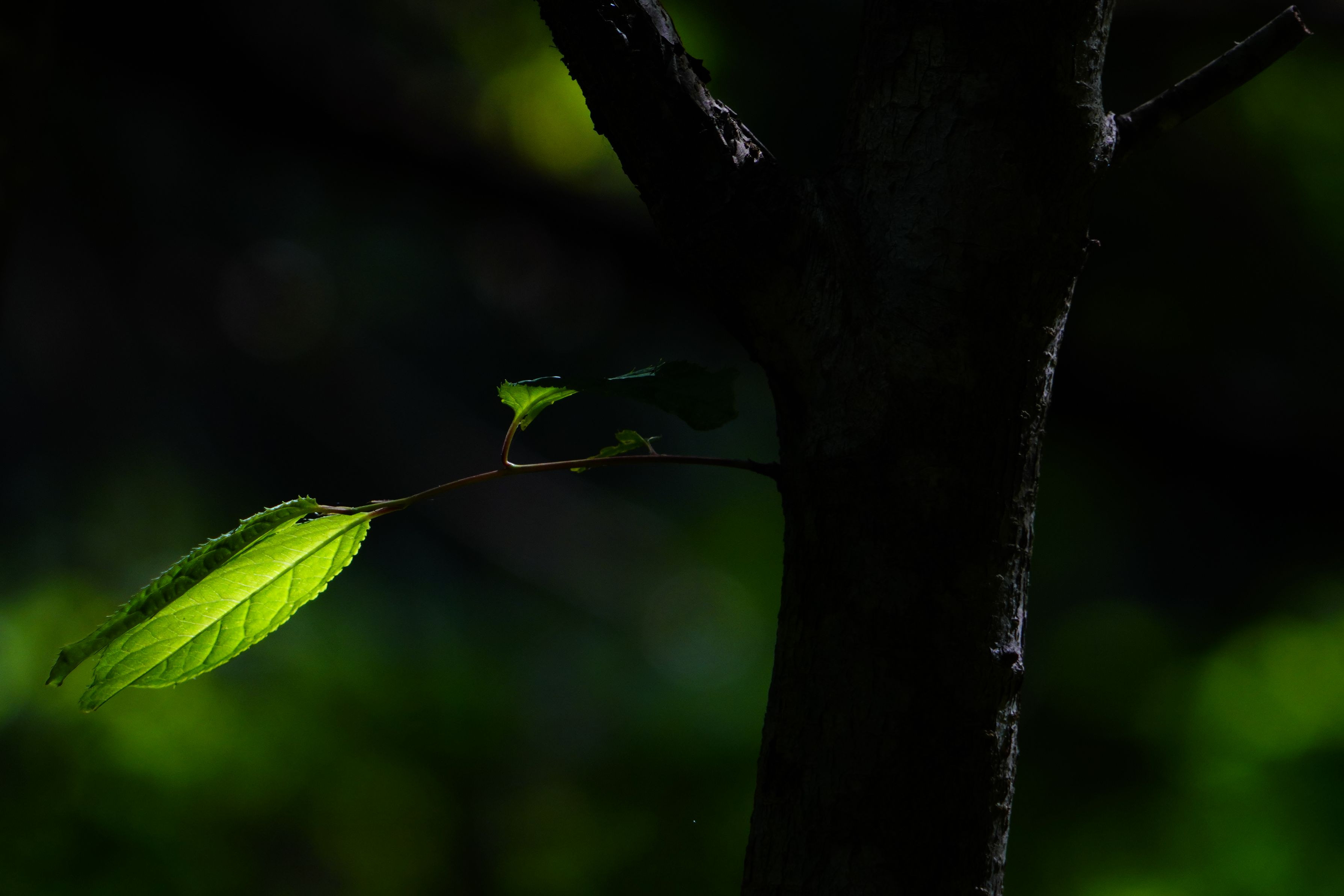 奥深い森の中は闇に包まれているが、一筋の光であっても新芽を出し癒しを与えてくれる。