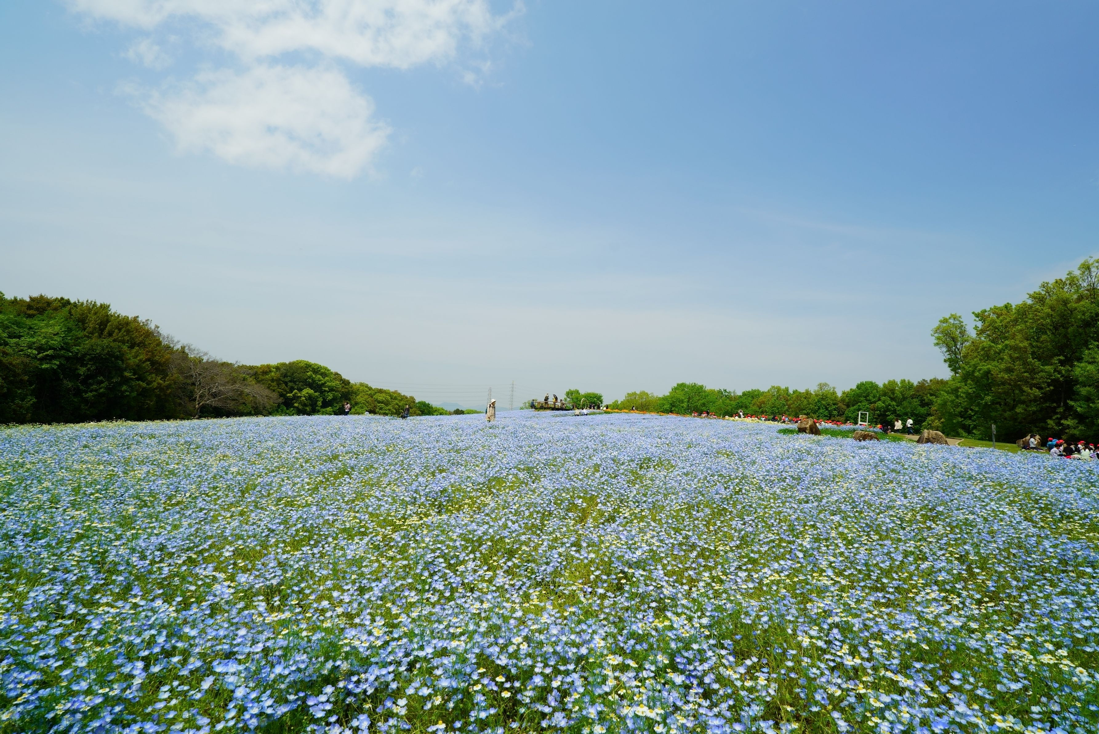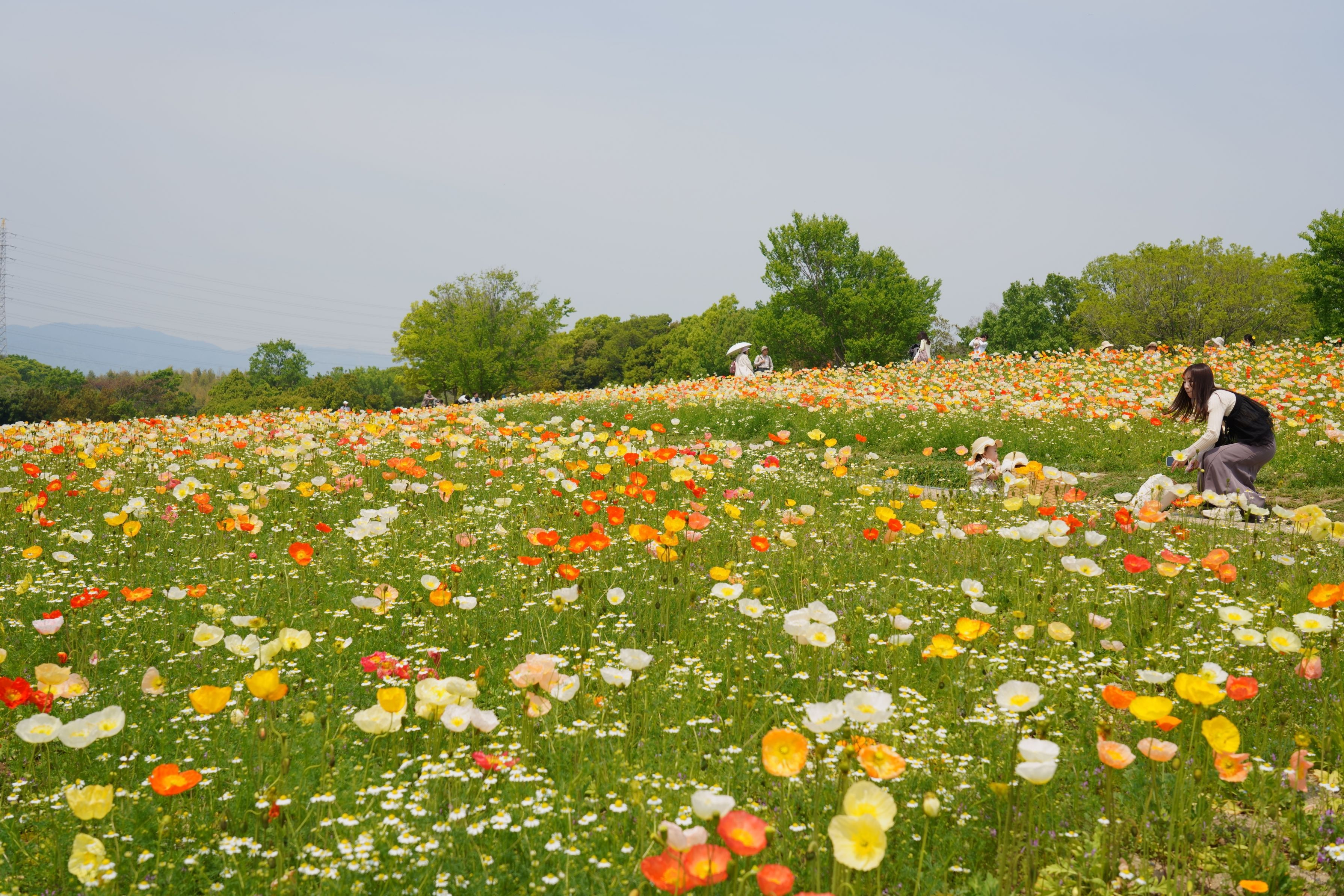 右側に点々と見える赤色は小さい子たち(おそらく遠足で来たと思われる幼稚園児)のお弁当タイム