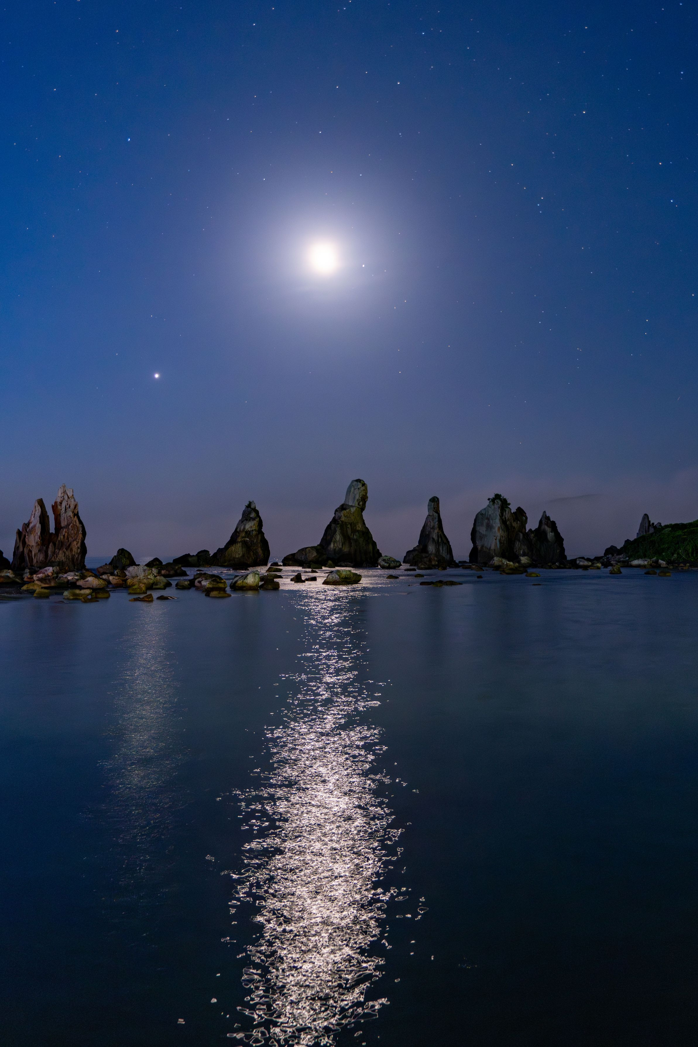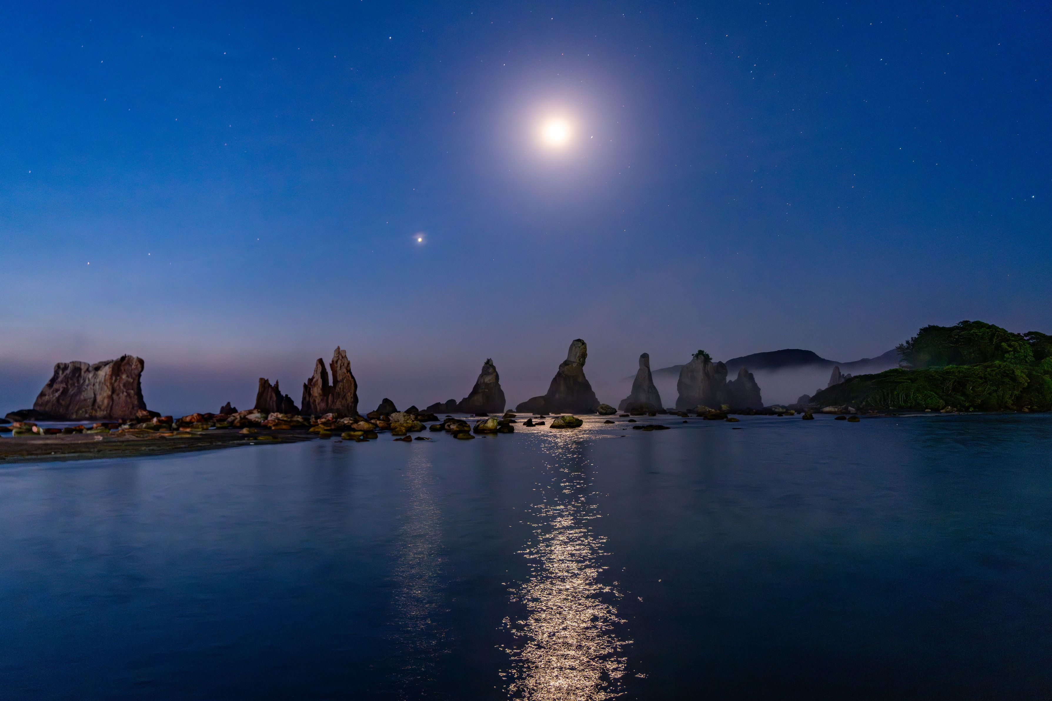 和歌山の旅、最終日の早朝3時半に橋杭岩に到着。目前に月下の絶景が静かに待っていました。