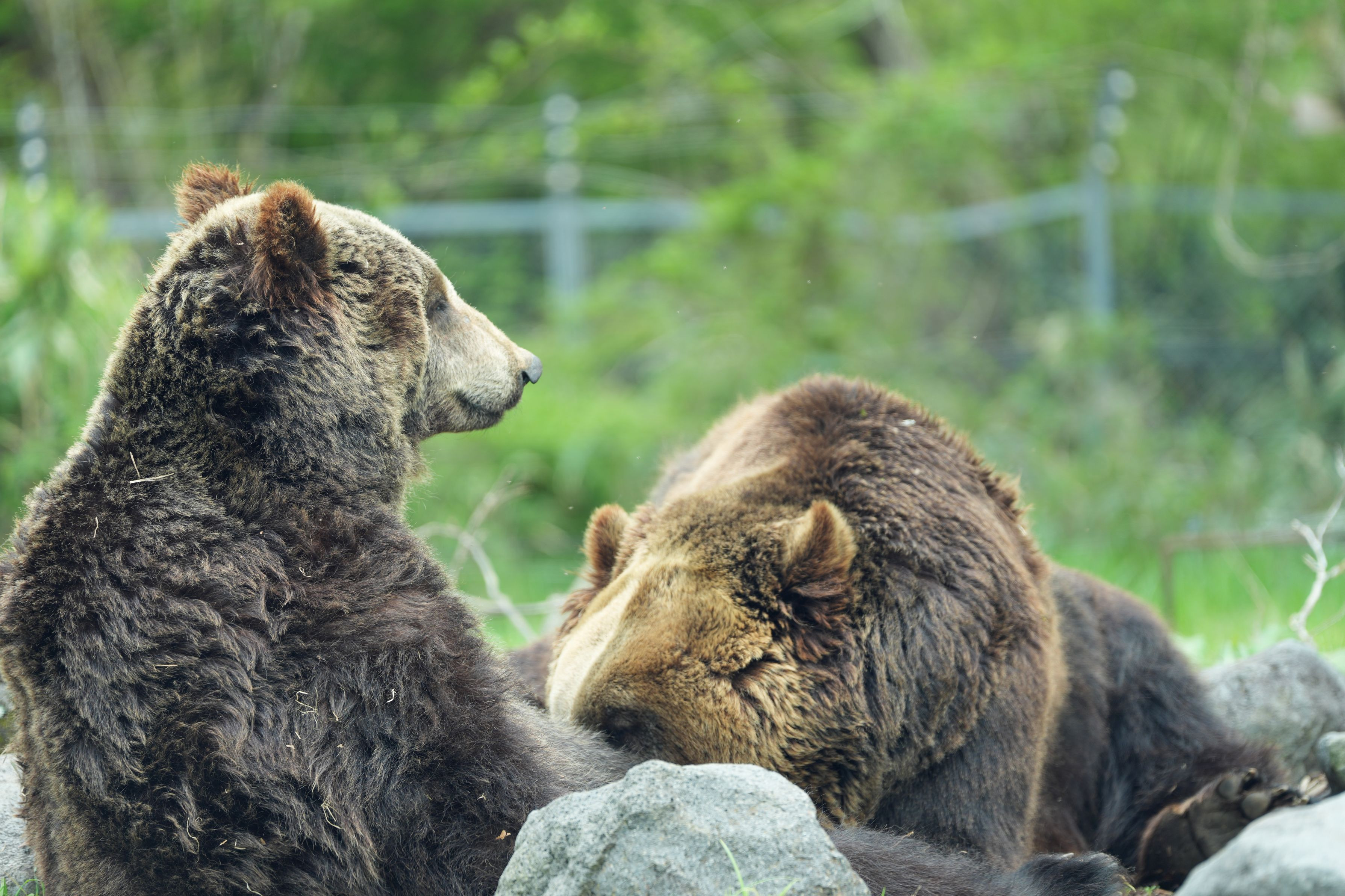 富士サファリパークのサファリゾーン(マイカーで放し飼いエリアに入れる)でガラス越しに撮影しました。近くで見るくまは迫力がありました。