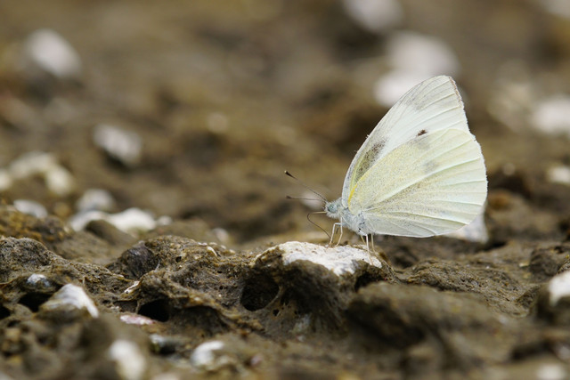 モンシロチョウの吸水行動。