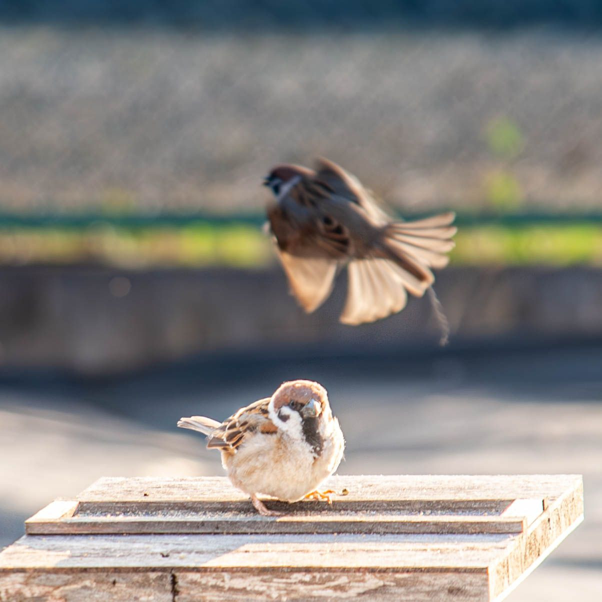 撮影は四月です。気に入った居候雀さんの一瞬の姿ですが・・・ちょっと投稿憚り、一時ストックにしていました。憚った写真をよく見ていただければ理由はお分かりかと思います。しかし、やっぱり雀の生活の姿そのものと一つとして・・・・「投稿しました!」
