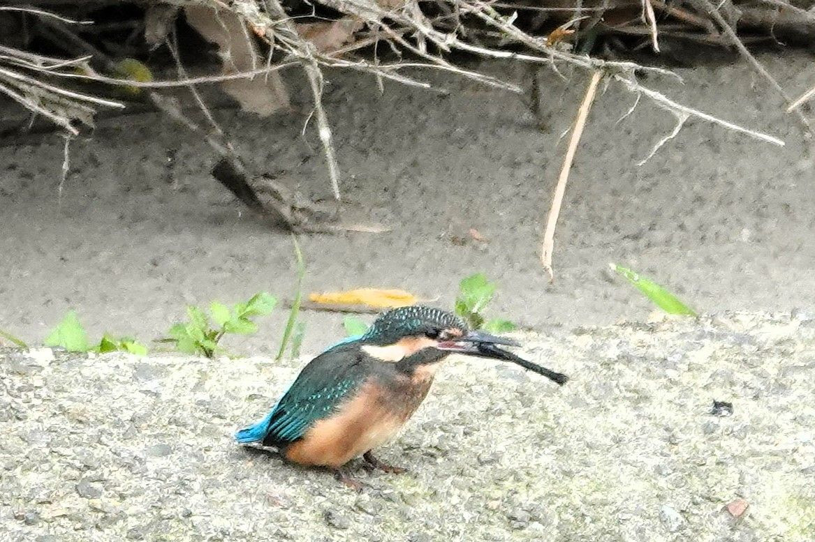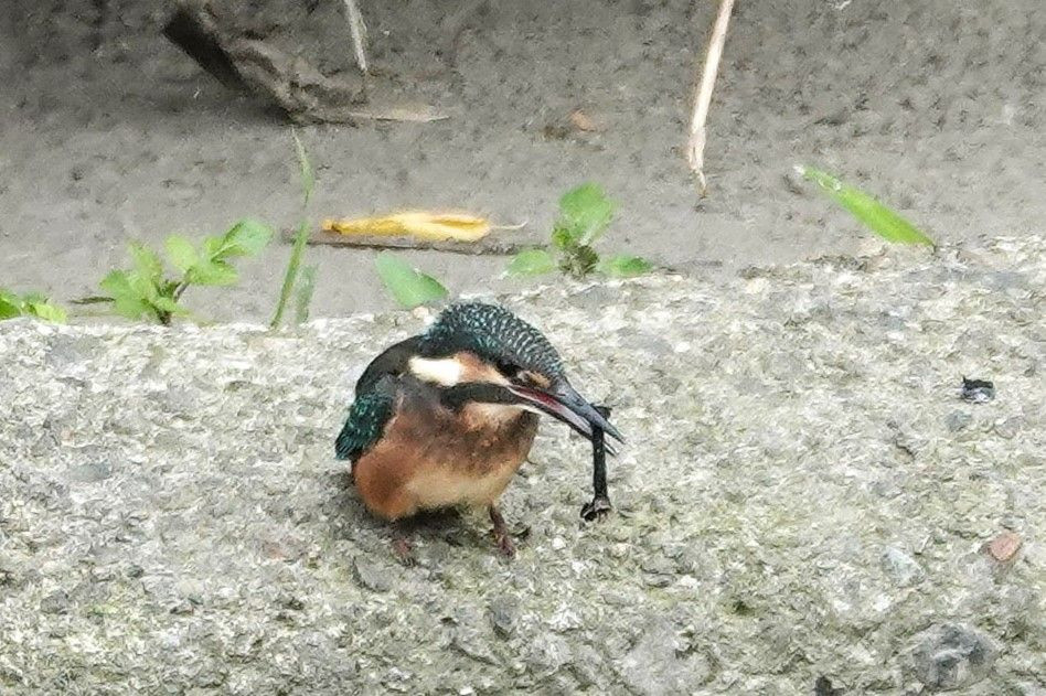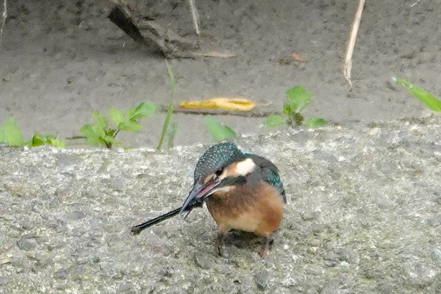 #カワセミ#の幼鳥が親からの給餌を待つ間に自分で捕食の練習をしていました。