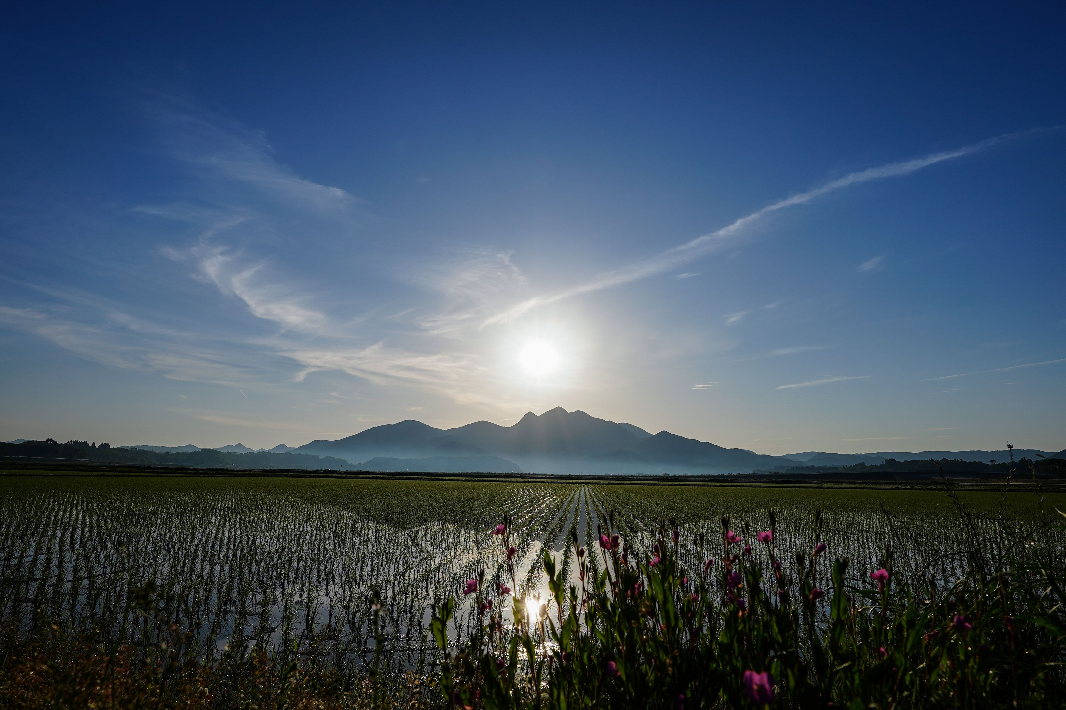 撮影に行くといつも水田の見回りをしているいる農夫さんに会います。この日は青空が綺麗でした。