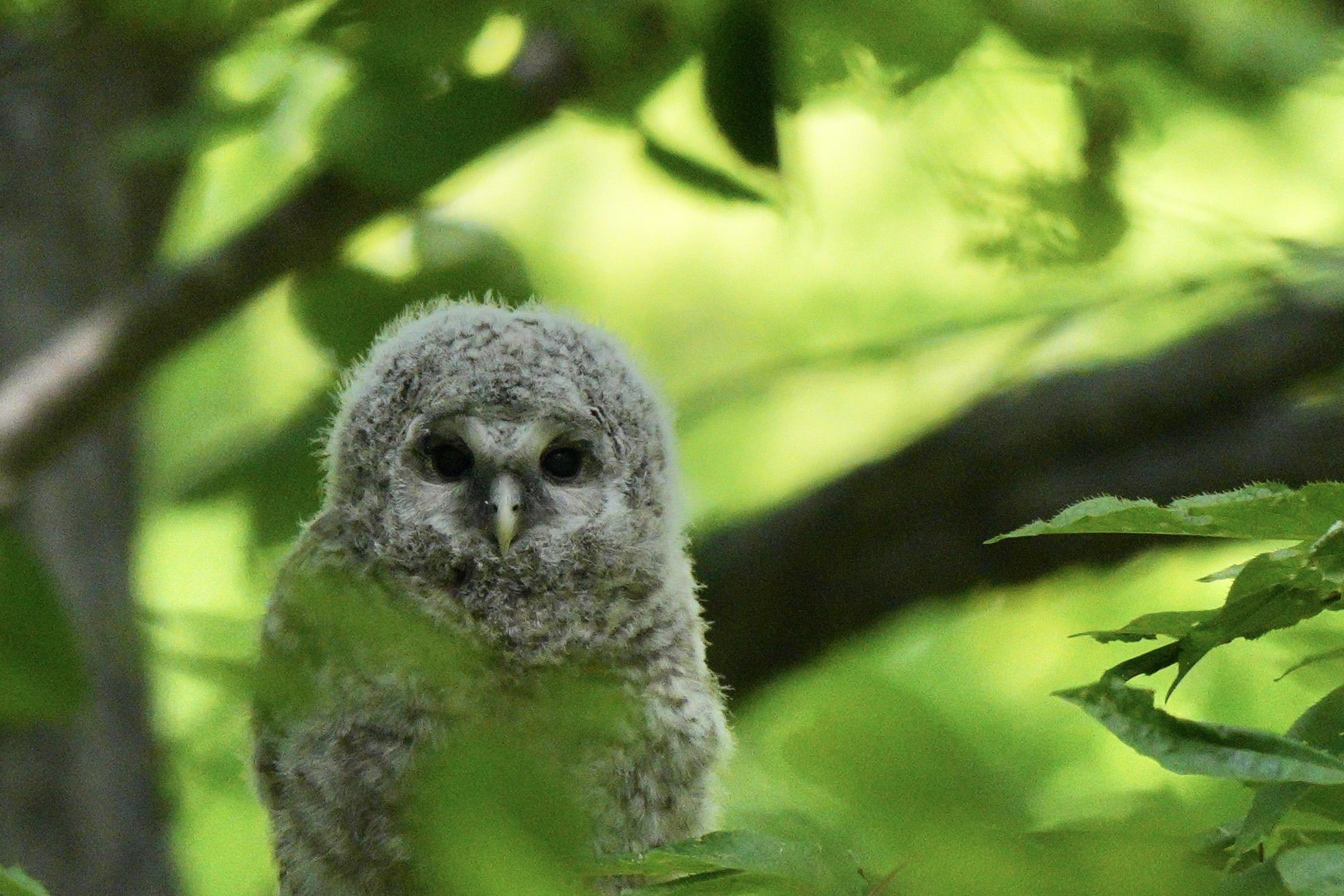 先日出会ったエゾフクロウの雛ちゃんの別ショットです ふわふわの産毛、ぬいぐるみみたいですよね 元気に順調に育っているのかな