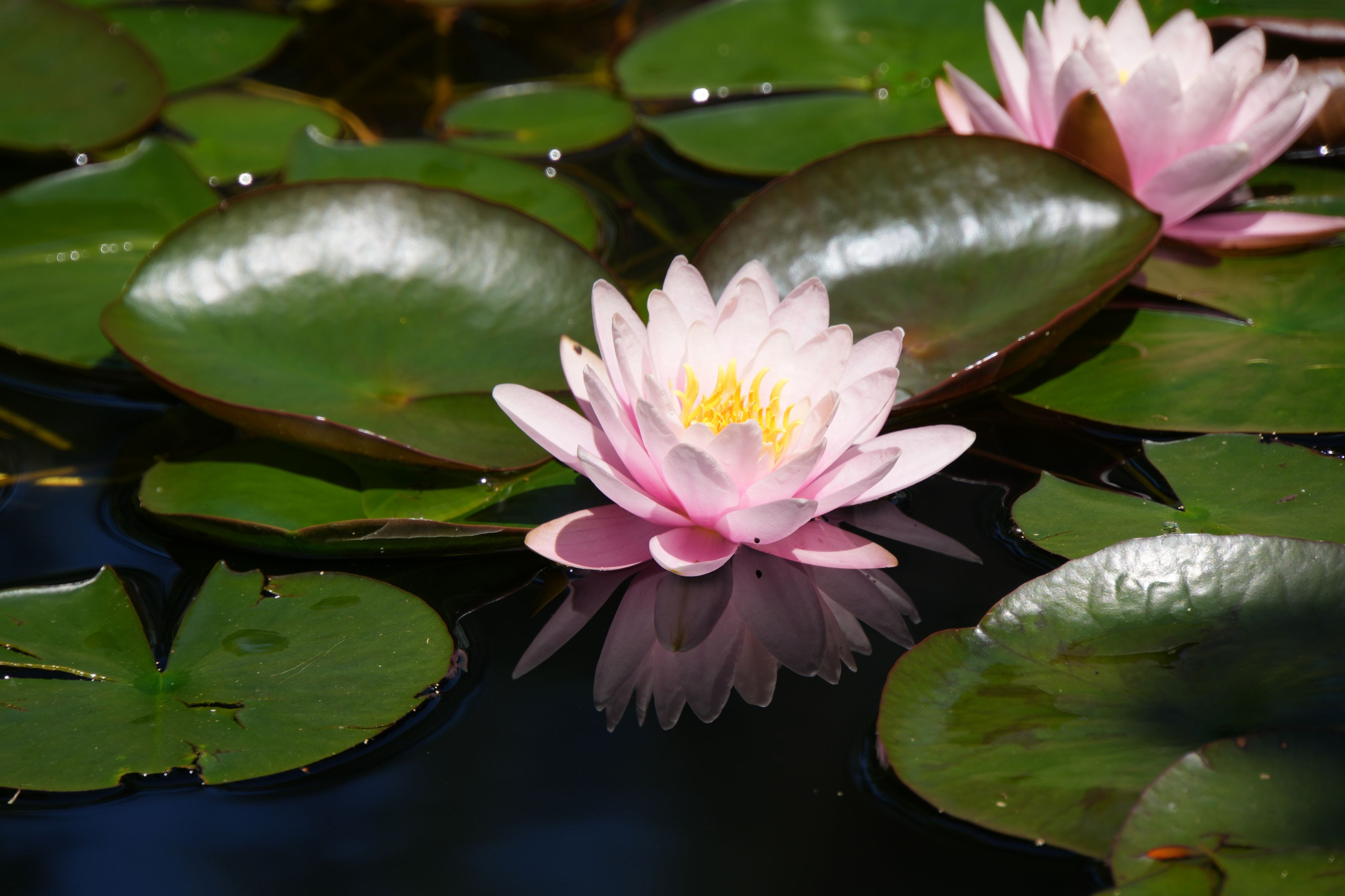 蓮の花びらの葉脈まで水面に映り込んでいそうで、なんともきれいでした。