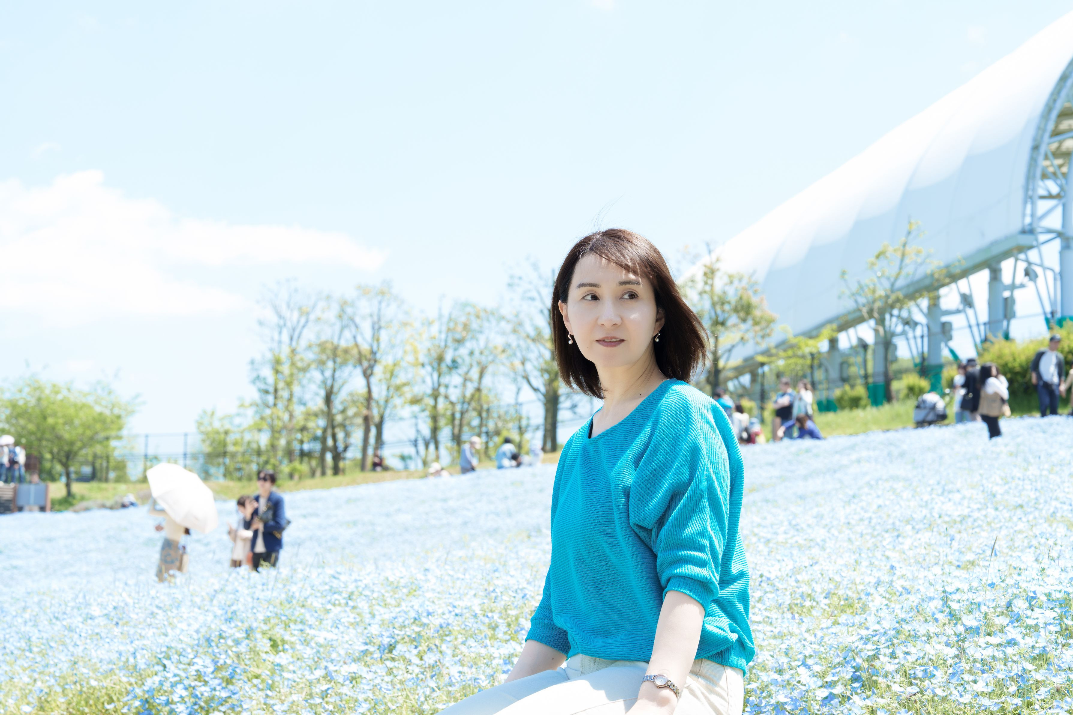 讃岐まんのう国営公園で、ネモフィラと一緒に。
