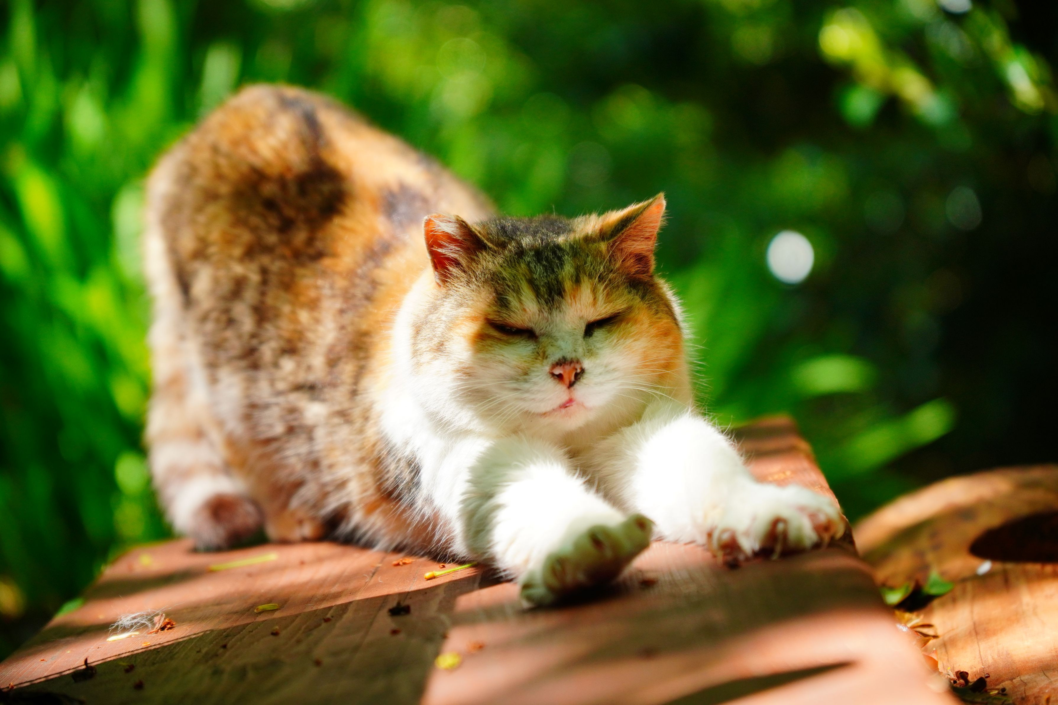 起きて伸びのポーズから香箱座りになって、また寝る。 ニャンコの得意技!