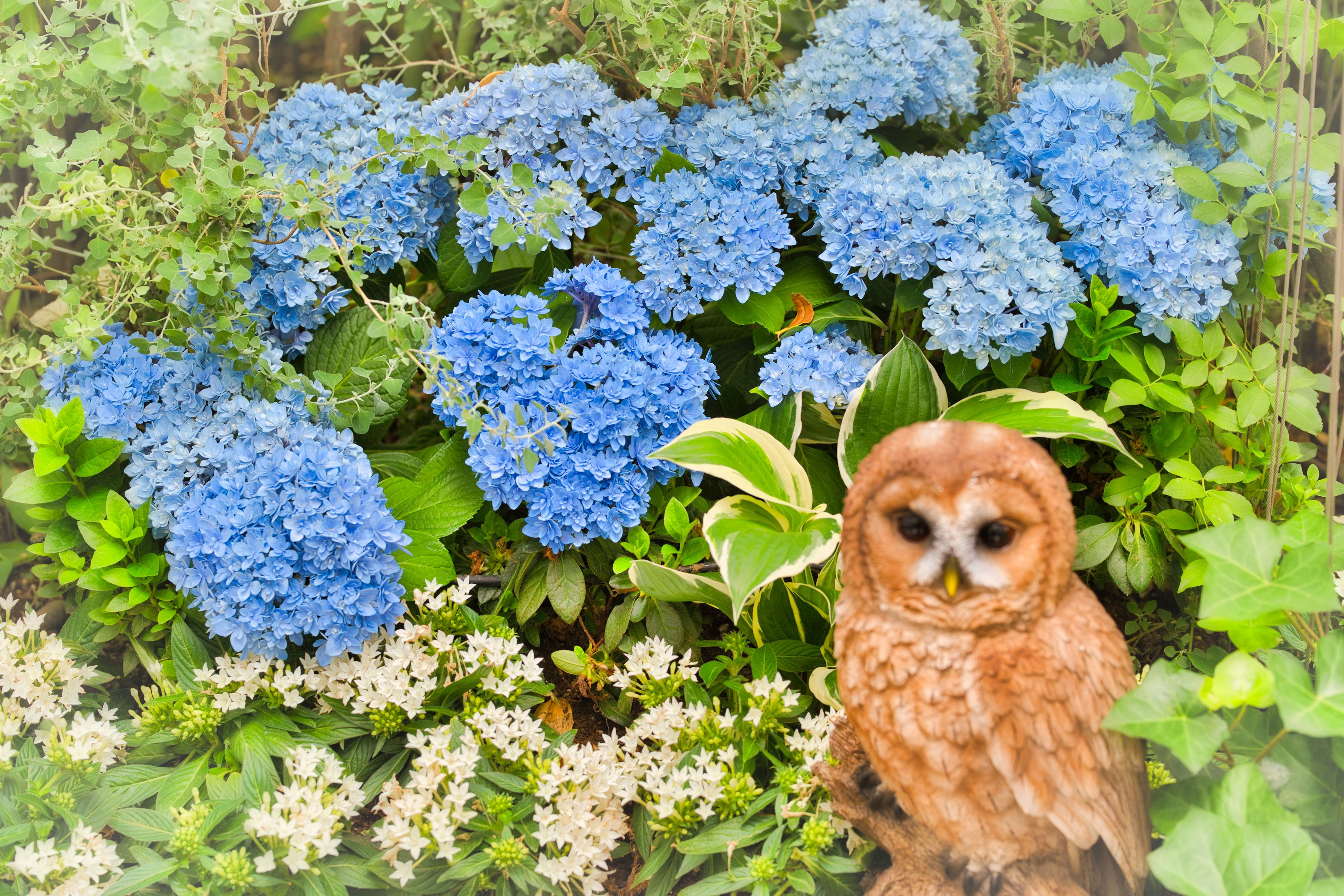 あじさいガーデン、紫陽花ブルーと置物 ワンポイントの置物で雰囲気が華やぎます! #フラワー2025#