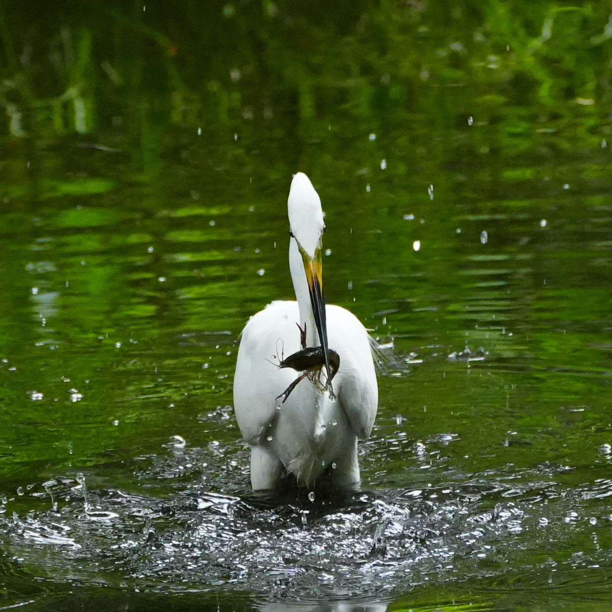 ダイサギに捕らえられたザリガニ
