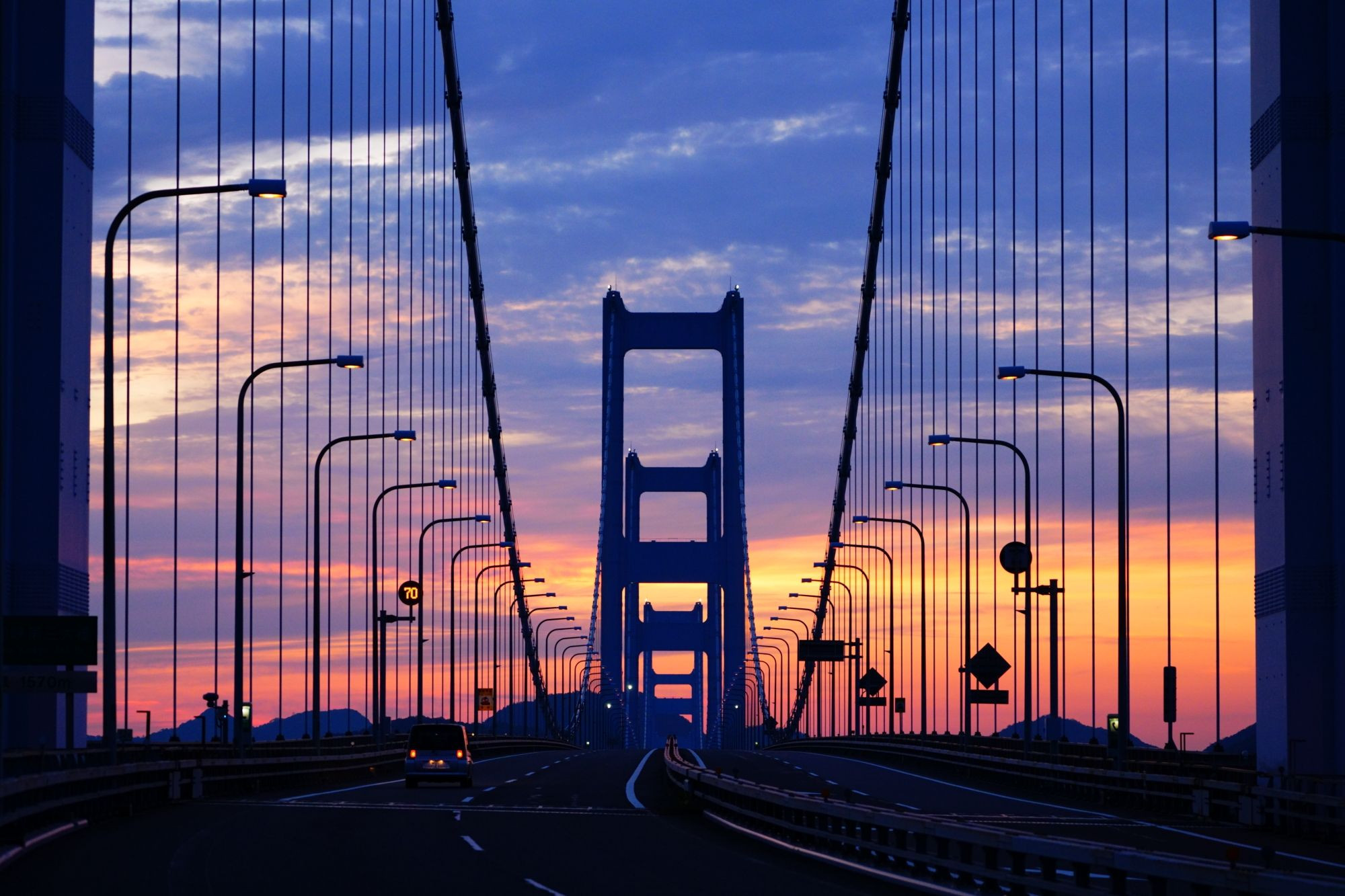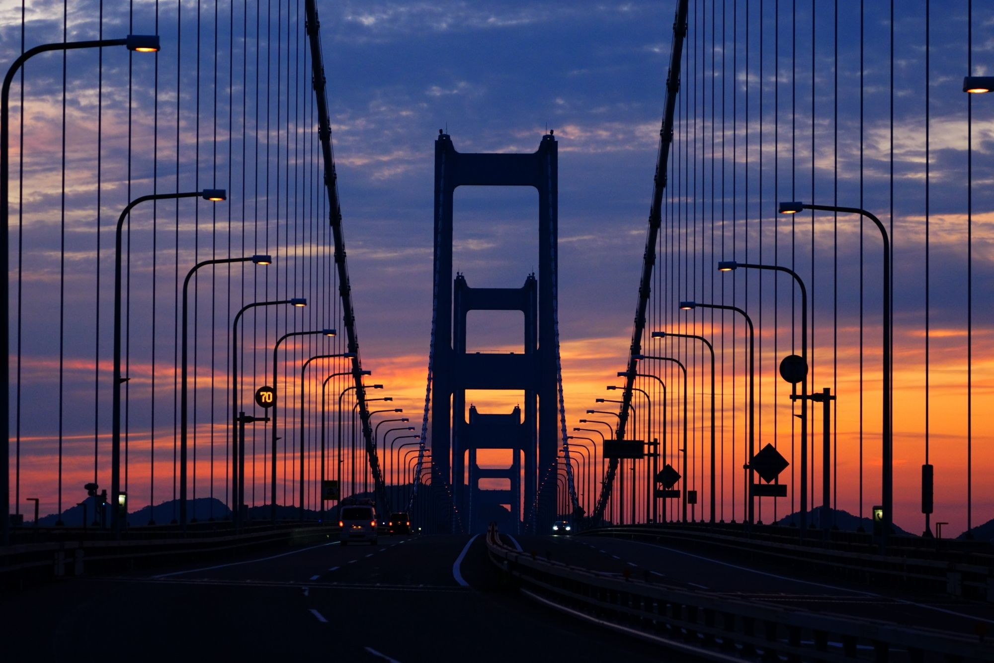 来島海峡大橋の日の出前