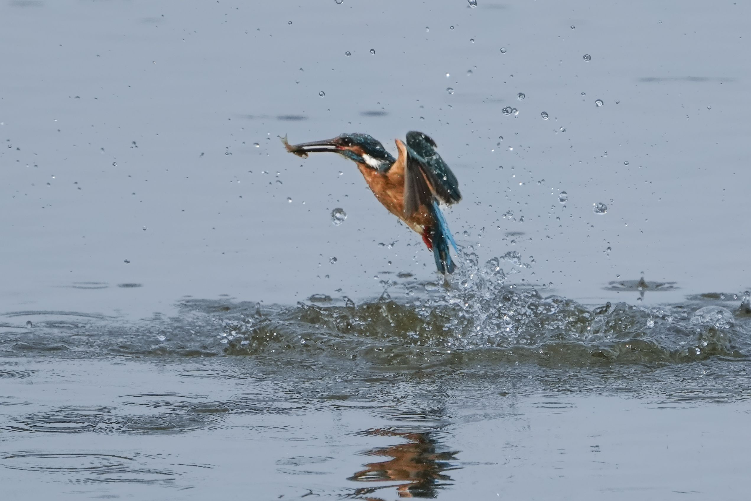 ダイブから離水して魚もキャッチできた瞬間 サイド光で好みですけど、ピントは少し甘めになりました。