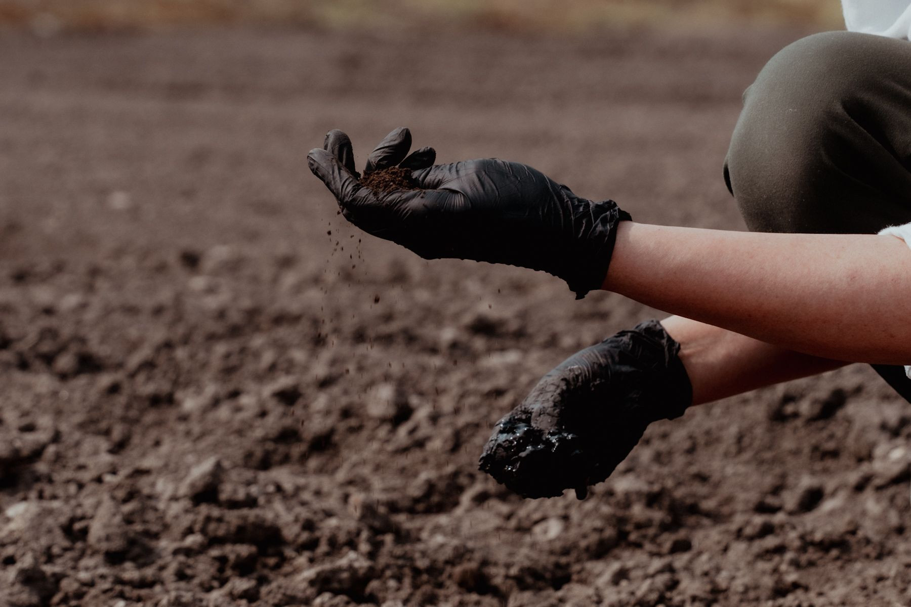 農業と書道をくみあわ組み合わせて作品を作っているアーティストの手。 材料を調合してる