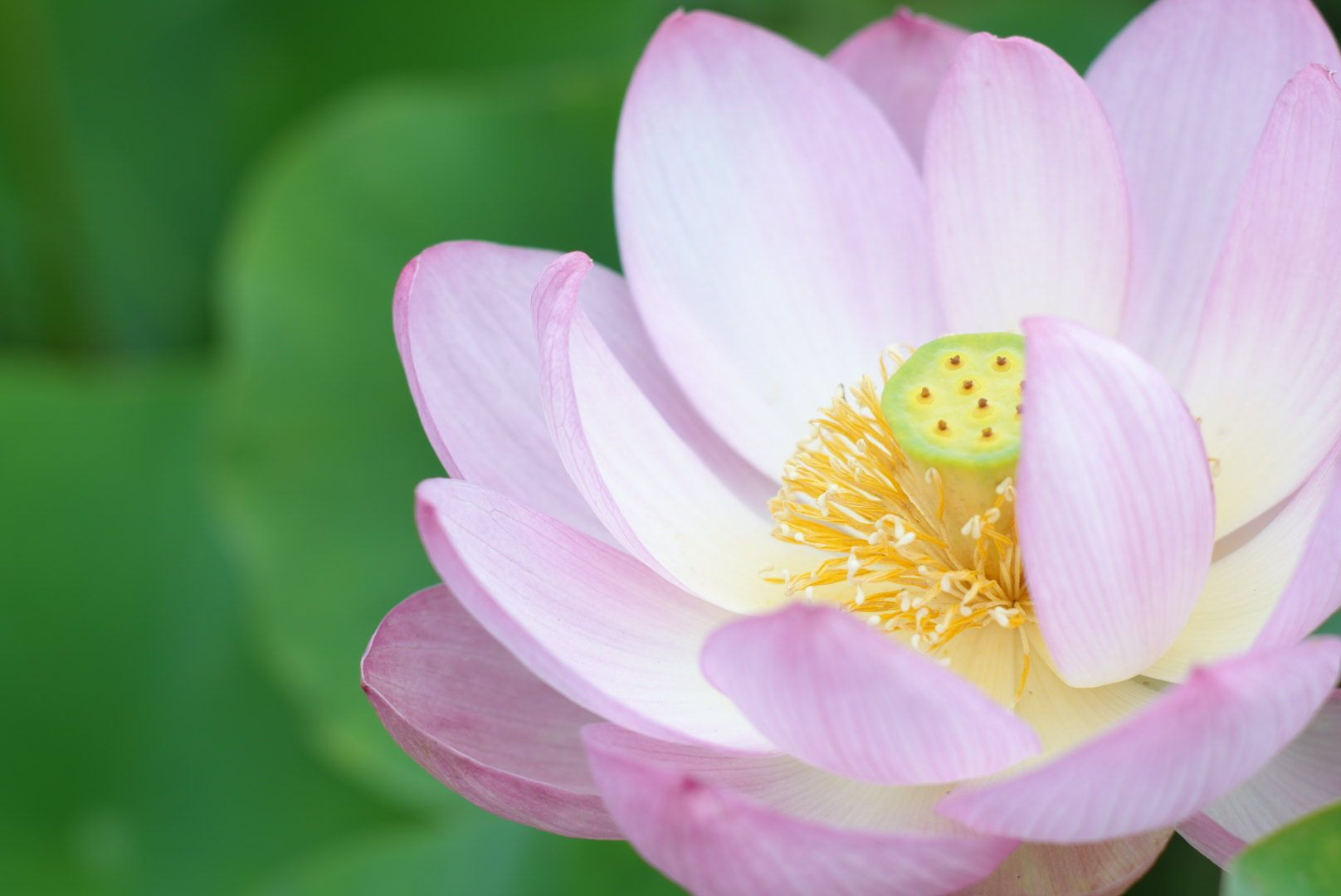 ハスの花が開花して2日目になりました。おしべがハッキリ確認できます。今日は雨の影響が心配です。 80mm F4 でマニュアル撮影しました。