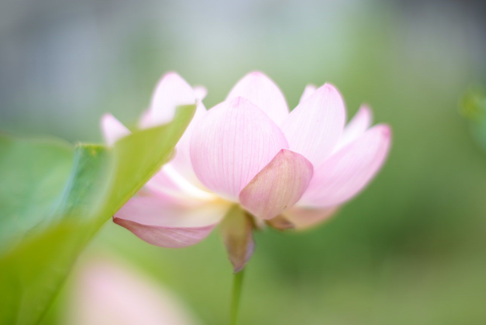 ハスの花を横から撮影しました。ハスの花びらは横ら見ても美しいです。 80mm F1.4 でマニュアル撮影しました。