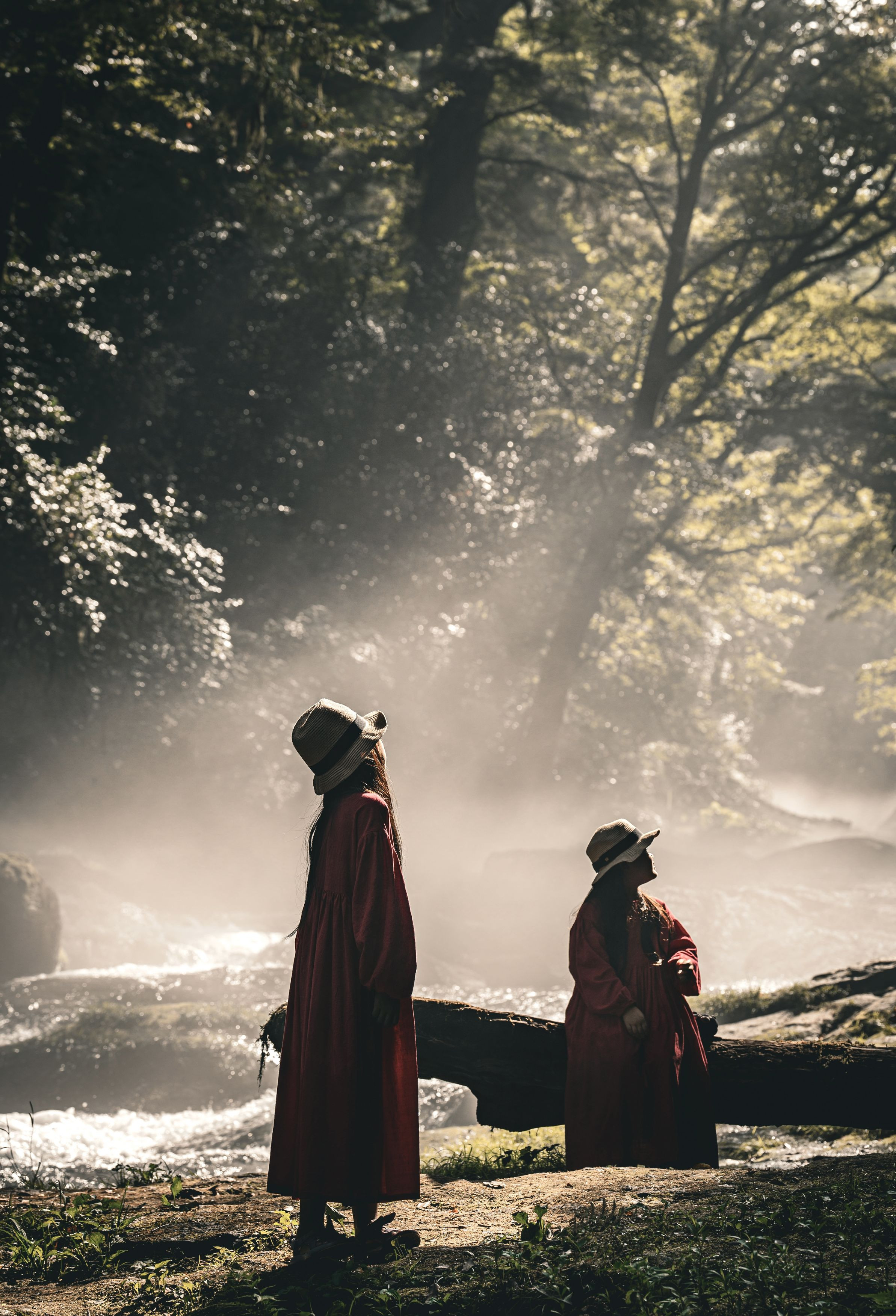 渓谷での一場面。 光芒待ちの子どもたちが光合成してるみたいでした。