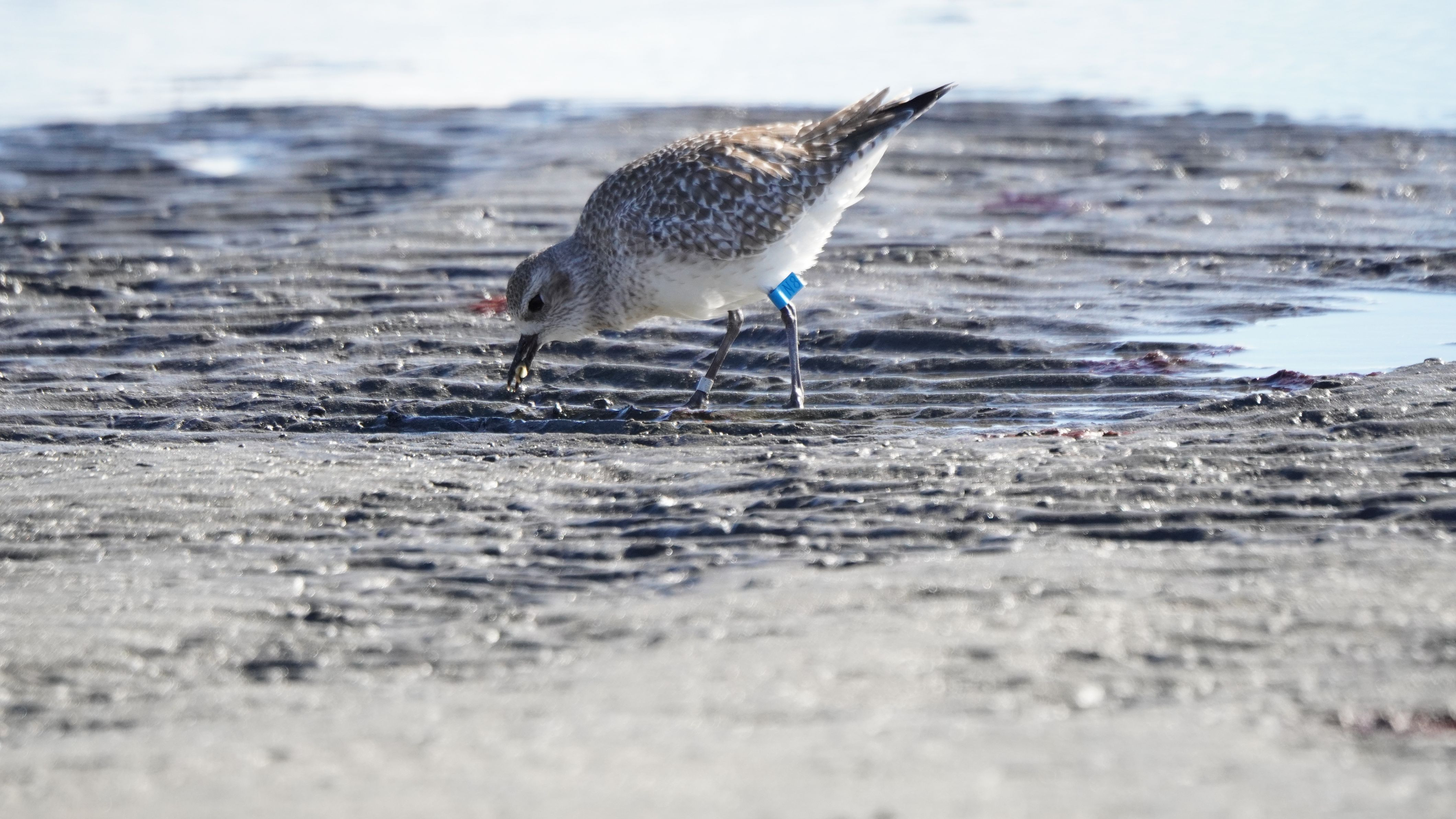 早春の三番瀬公園で見掛けたダイセン。貝を啄んでいます。